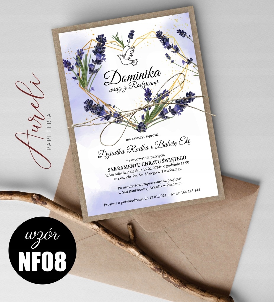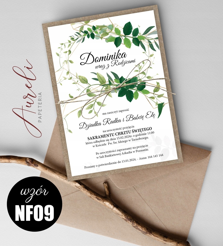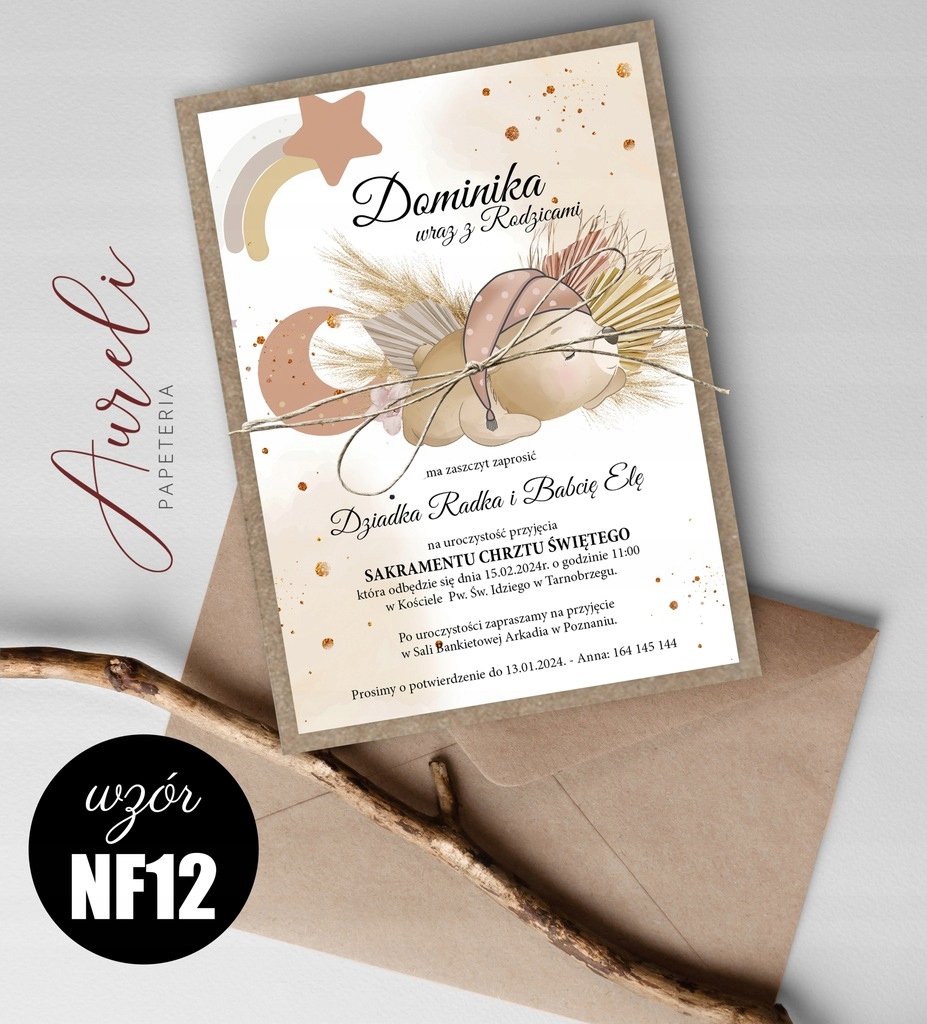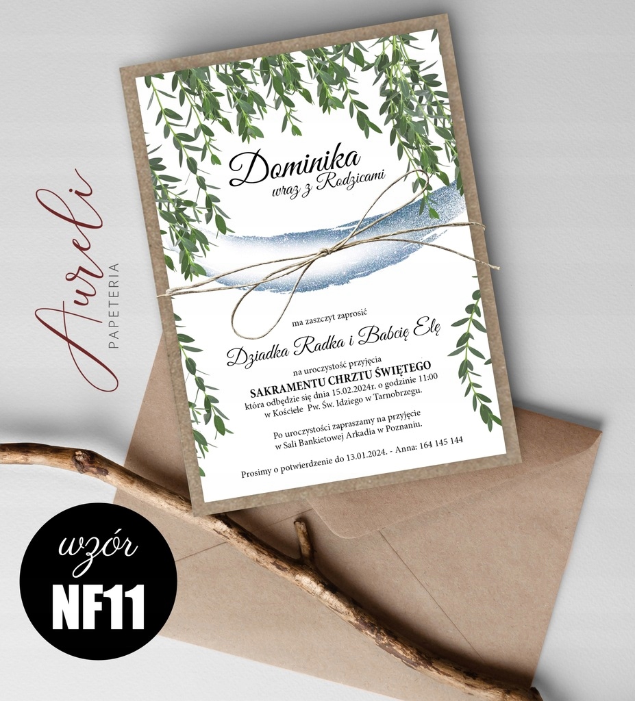 Eko Zaproszenia Na Chrzest WZORY koperta sznurek