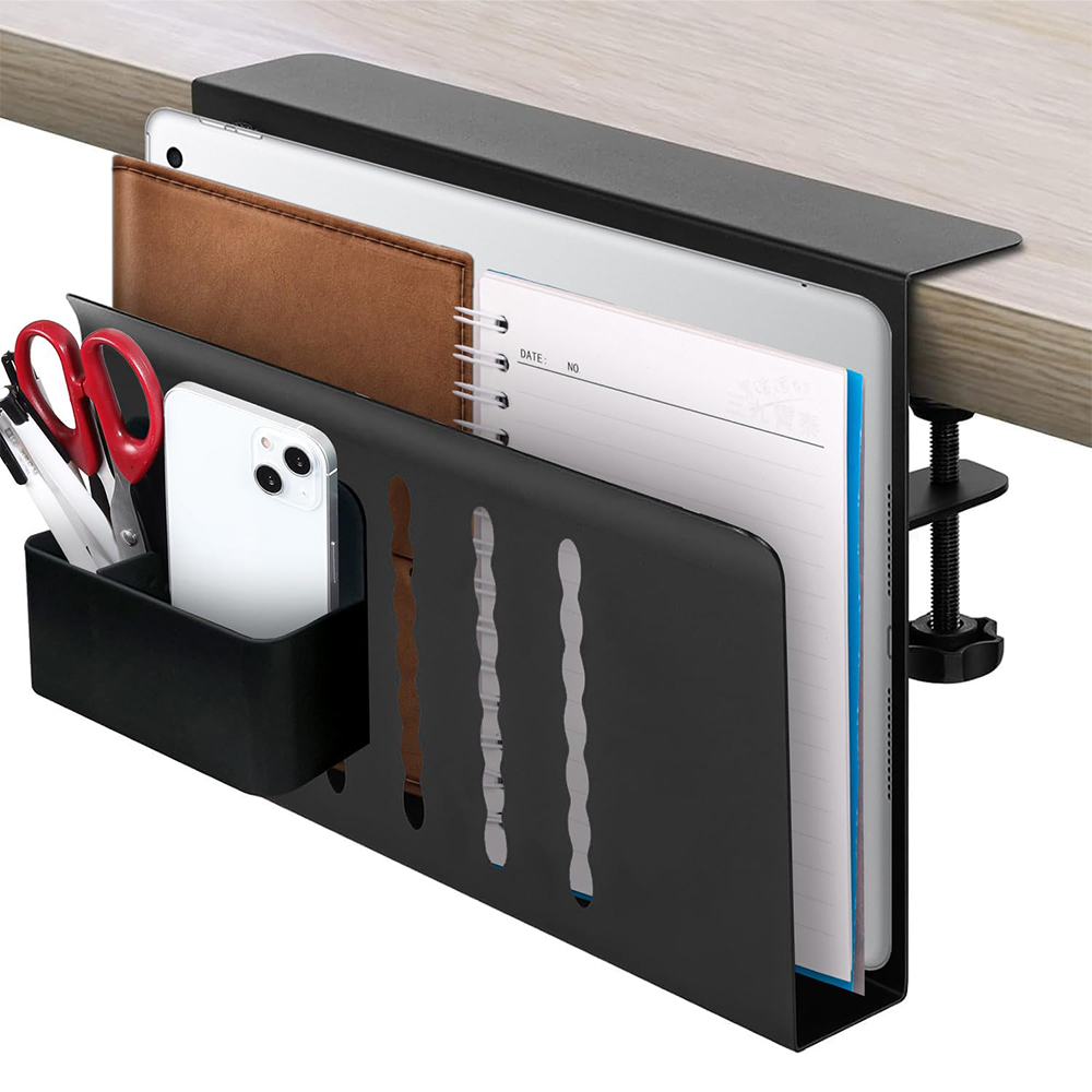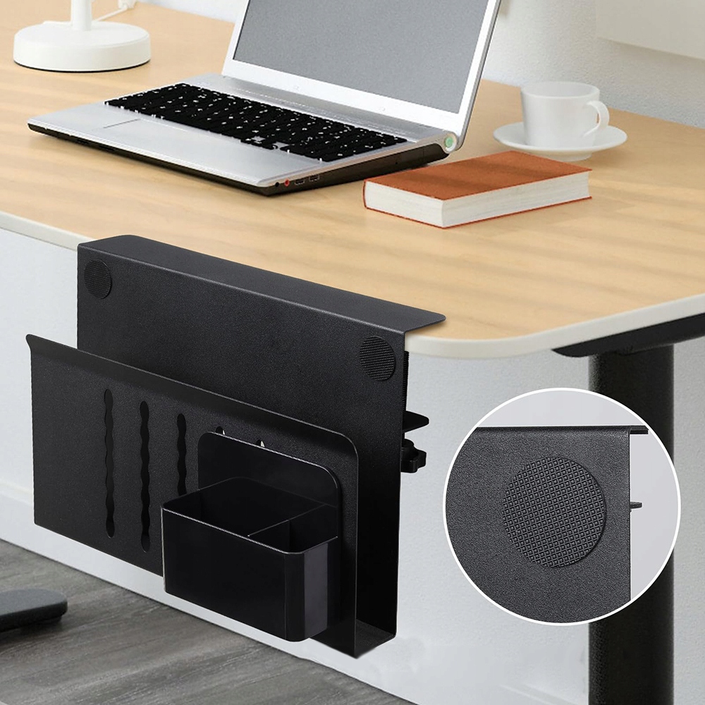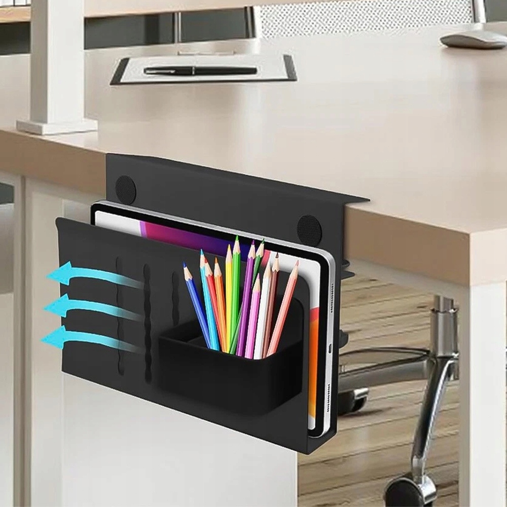 Багатофункціональне офісне відділення для зберігання: це офісне відділення для зберігання кріпиться збоку вашого столу, не займаючи дорогоцінного місця. Ідеально підходить для зберігання ноутбуків, планшетів, прихованих кабелів, портфелів, ноутбуків тощо. Він також має знімний тримач для ручок, лінійок, ножиць та інших дрібних предметів, що допомагає підтримувати порядок на вашому столі.