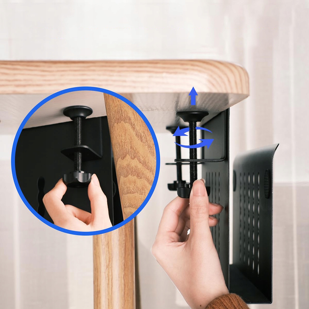 Встановлення без свердління: наш бічний настільний тримач не вимагає свердління, і його легко встановити. Просто помістіть його у вибране місце та затягніть гвинти. Протиковзкі накладки на гвинтах не пошкодять стільницю та забезпечать стійкість.