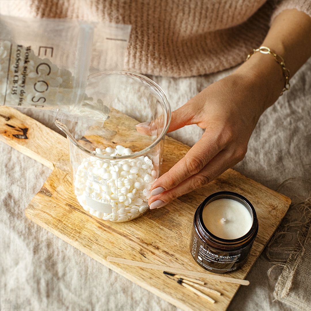 Натуральний соєвий віск працює для приготування свічок, затоплених у страві, і для свічок, що використовуються для масажу, та для ароматних тартів, які можна розмістити в каміні. Завдяки цьому ви можете зробити свічки веганського аромату з натуральних рослинних інгредієнтів, які створить унікальний настрій вдома або працюють як подарунок для коханої людини.