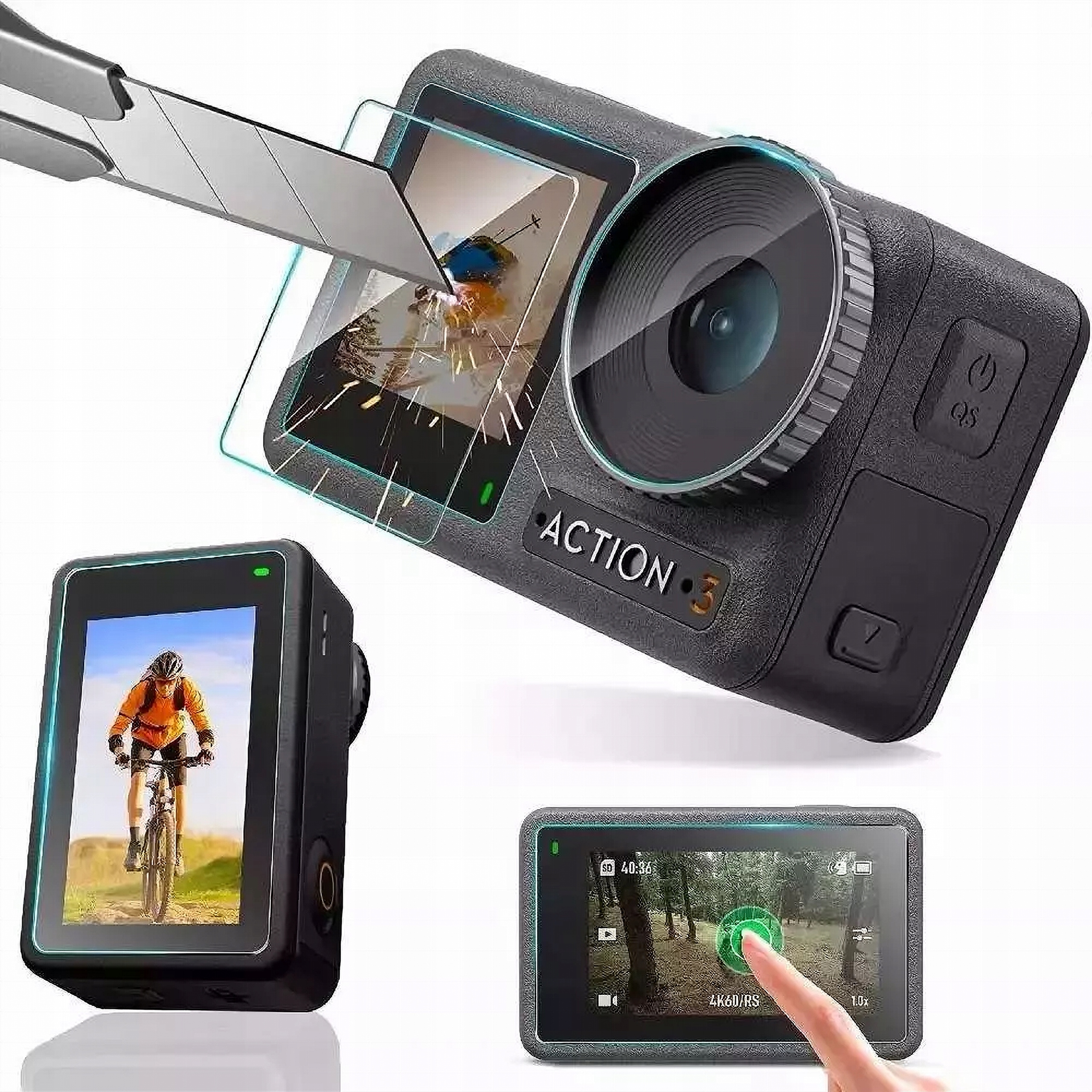 ✅ Загартоване скло, захисна лінза, передній і задній дисплей для камери DJI Action 3 / 4