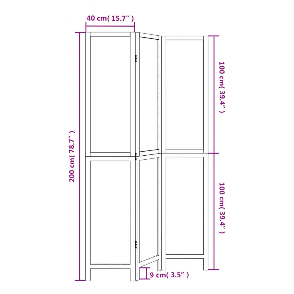 - Dimensions of each panel/wing: 40 x 200 cm (width x (width x height)