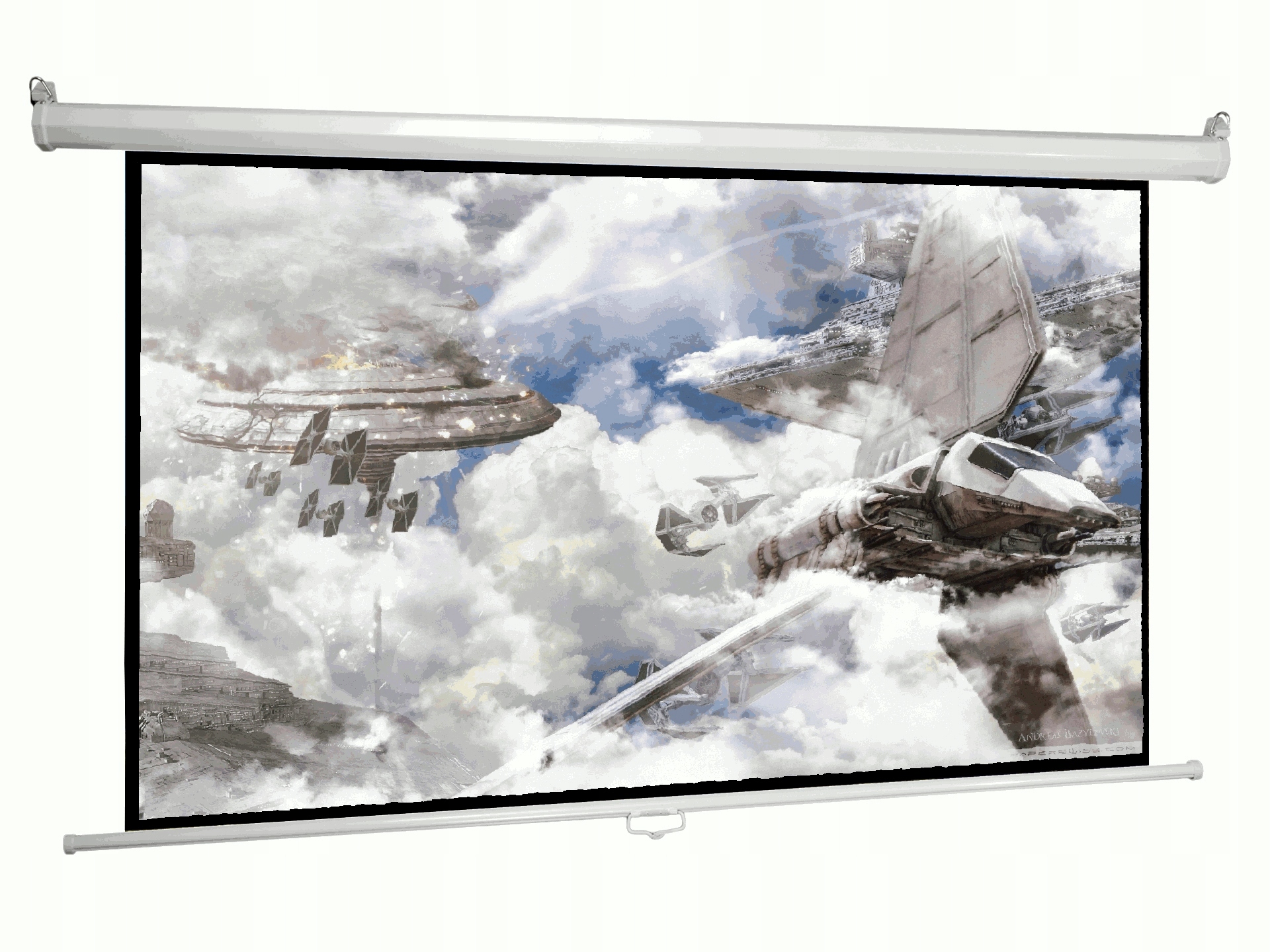 Керування екраном здійснюється вручну за допомогою ручки. Екран напівавтоматичний. Ми можемо зупинити його на будь-якій висоті.
