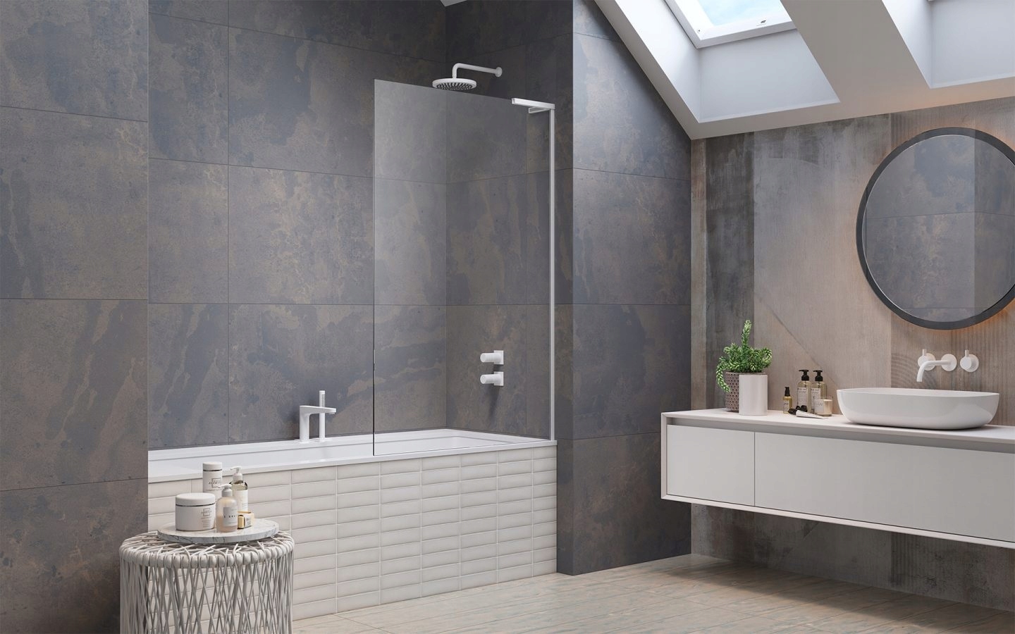 Тема продажу -це одноразовий екран розширення Modo SL White Pnj II у правій версії у скляному прозорі з білими профілями. Екран нерухомий постійно встановлений до стіни біля ванни.
