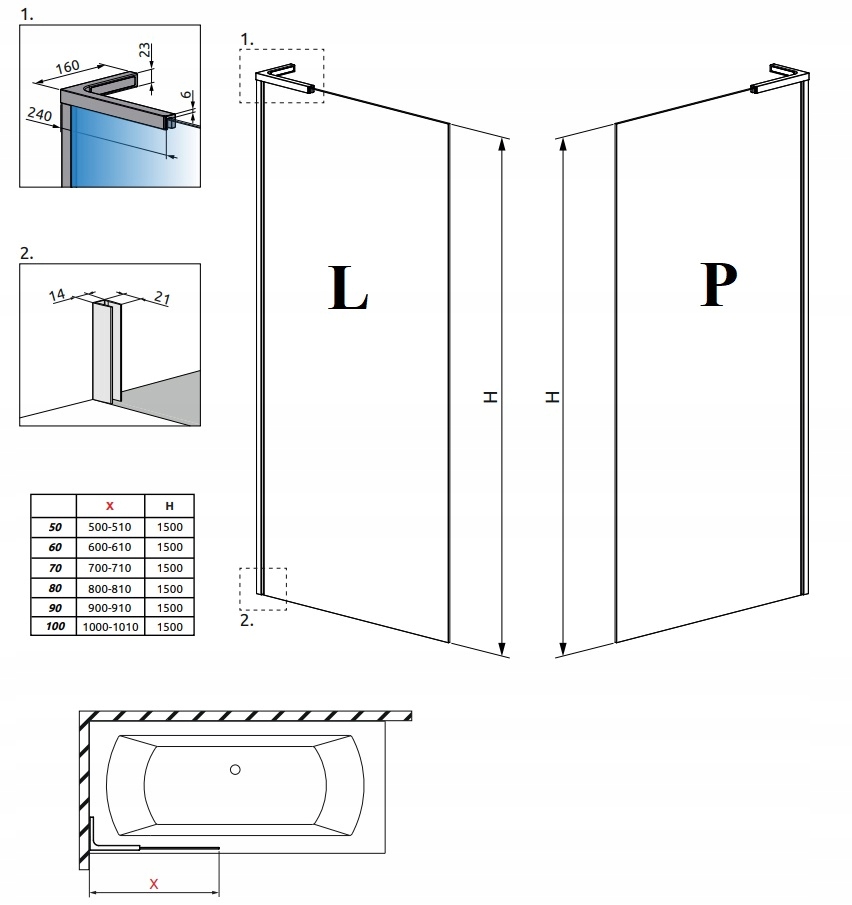 Екран Nawannine Modo SL White PNJ II 60x150 Правий Радауей