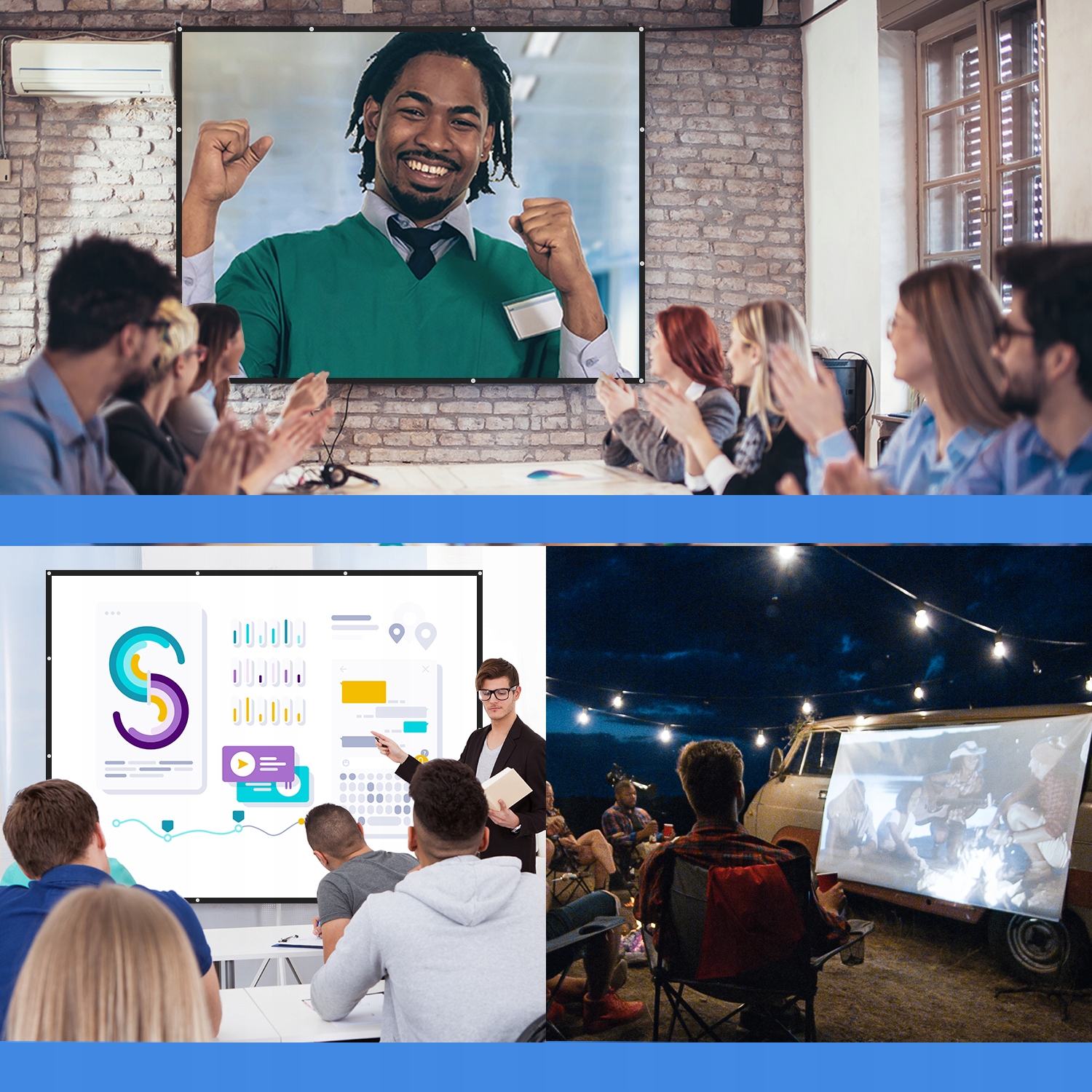 - Незалежно від того, чи це домашній кінотеатр, навчання в класі, презентації в конференц-залах чи публічні виставки, цей екран є найкращою поведінкою.