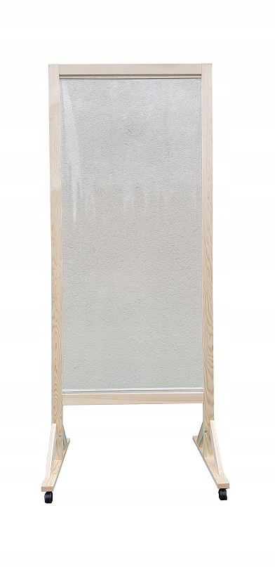 Фольга, яка використовується для заповнення, товщиною 0,4 мм, є високопрозорим, міцним матеріалом, який легко миється та дезінфікується. Каркаси виготовлені з сосни. Вони злегка закруглені (фрезеровані), що надає їм ніжну форму. Петлі на 180 градусів роблять екран більш практичним і стабільним.