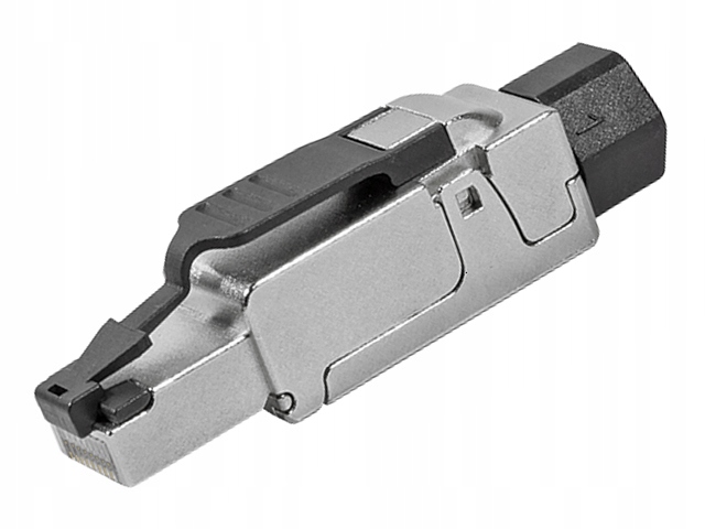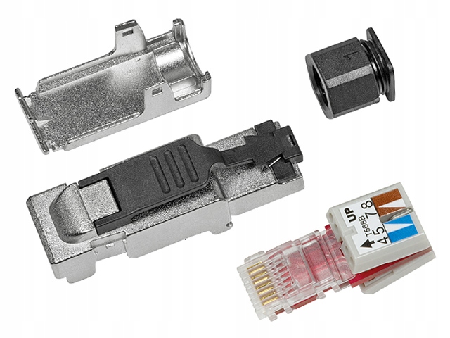 Вилка 8P8C (8-позиційний 8-контактний), також званий RJ45, є восьмиконтактний роз'єм, що використовується в інсталяціях, телекомунікаційних і комп'ютерних мережах. Вилка має вісім штирів, які з’єднані з ножовими контактами, що проходять через ізоляцію в проводах кабелю, зачищених під час монтажу. Завдяки своїй конструкції (металевий пилонепроникний корпус, трикомпонентний контактний контактний модуль) пропонований штекер дозволяє встановлювати на виті пари S/FTP, U/FTP, SF/UTP з товщиною жили (жили або дроту) в AWG 23 -26 діапазон. Завдяки відповідному профілюванню контактних контактів можливе монтування вилок на кручену пару з дротовими або багатожильними жилами (суцільними/жильними).