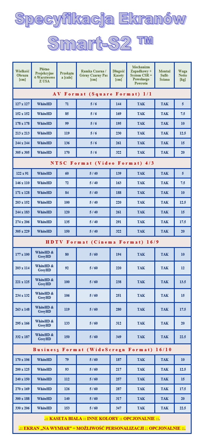 Ручний екран, серія Smart-S2, настінно-стельовий касетний, також для індивідуальної установки в підвісну стелю або в нішу