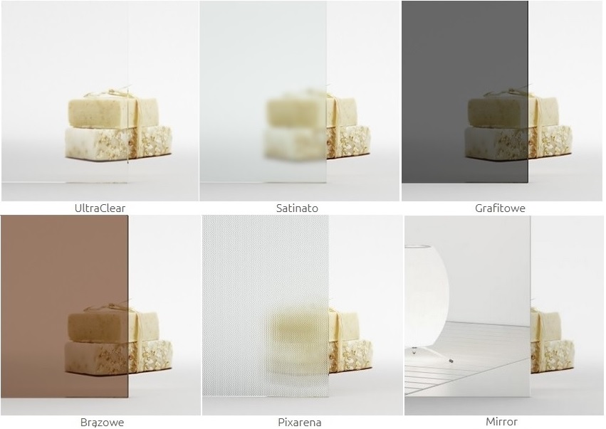 - Різні варіанти скла, в яких екран можна зробити за розміром. Візерунки нижче.