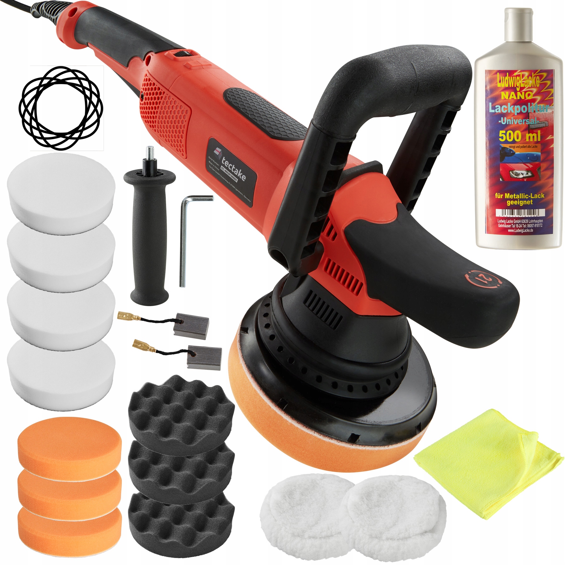 Універсальний полірувальник текстів ідеально підходить для полірування (високий глос), воску та видалення подряпин. Делікатні рухи для початку та орбітальні рухи значно знижують ризик перегріву та появу круглого креслення Голограми або 3D -ефекти. Відшліфовані пінопластові диски швидко і безпечно кріпиться завдяки кріпленням липучки. Швидкість обертання поділяється на шість градусів і має високий діапазон, завдяки якому гнучкий полірувальник Tectake завжди приносить чудові результати. weight