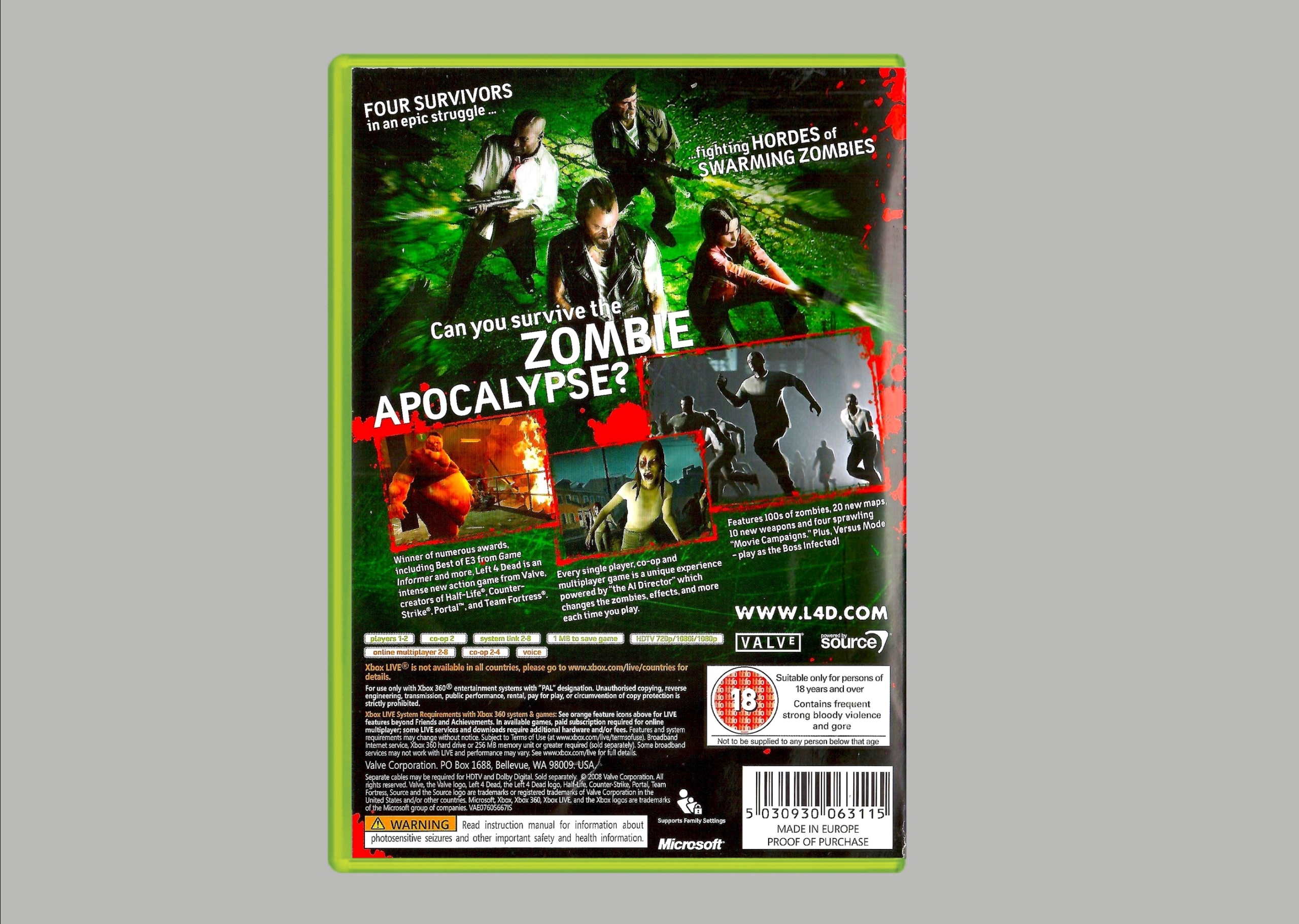 У грі XBOX 360 LEFT 4 DEAD ви граєте за персонажа, який бореться за виживання у світі, захопленому зомбі. Динамічний геймплей пропонує напружені битви з ордами нежиті. Система штучного інтелекту «Директор» підлаштовує рівень складності відповідно до навичок гравців, забезпечуючи постійні виклики. Співпраця з іншими гравцями має вирішальне значення для виживання, уможливлюючи тактичні підходи до бою. Багатий арсенал зброї та різноманітні навички персонажів роблять кожну гру унікальною.