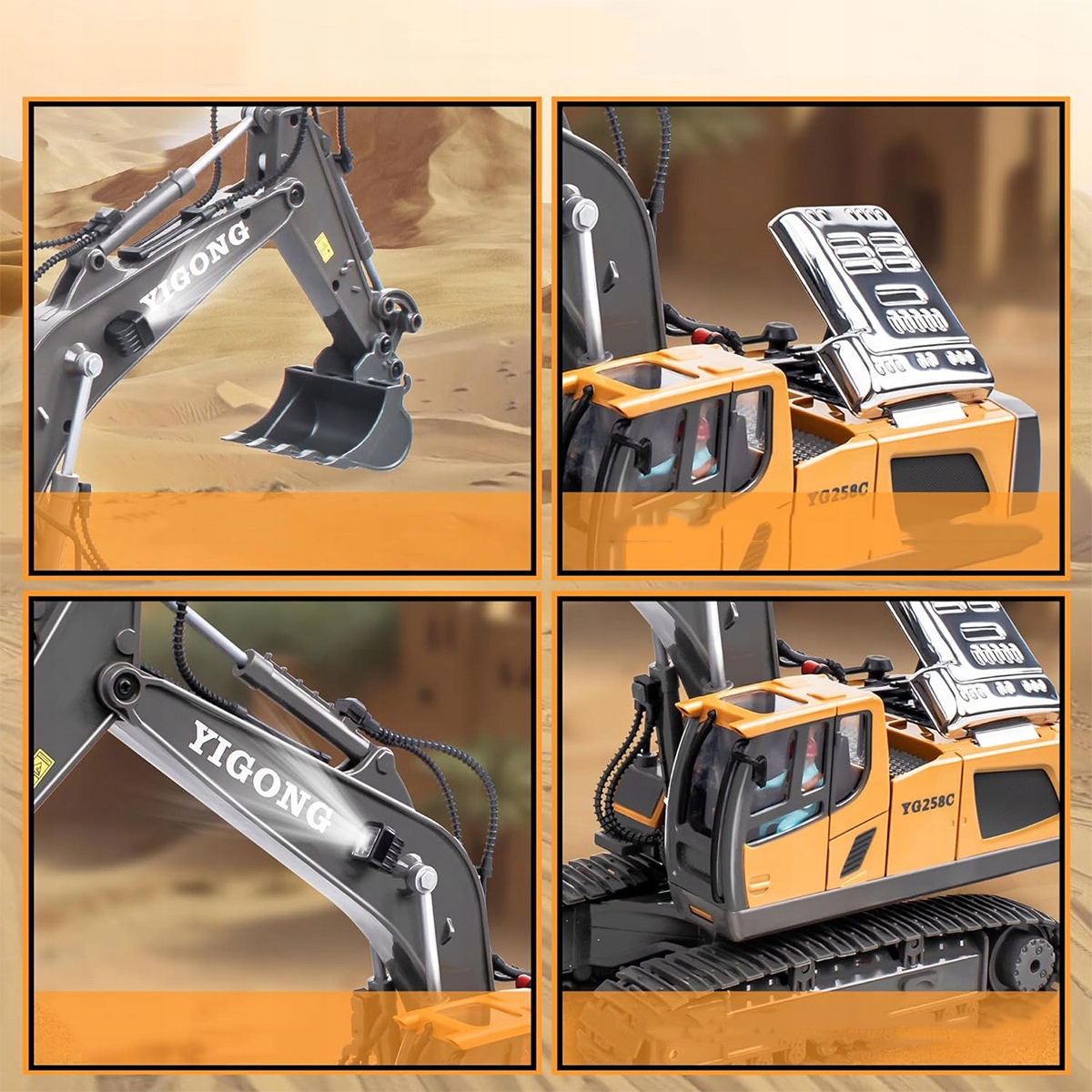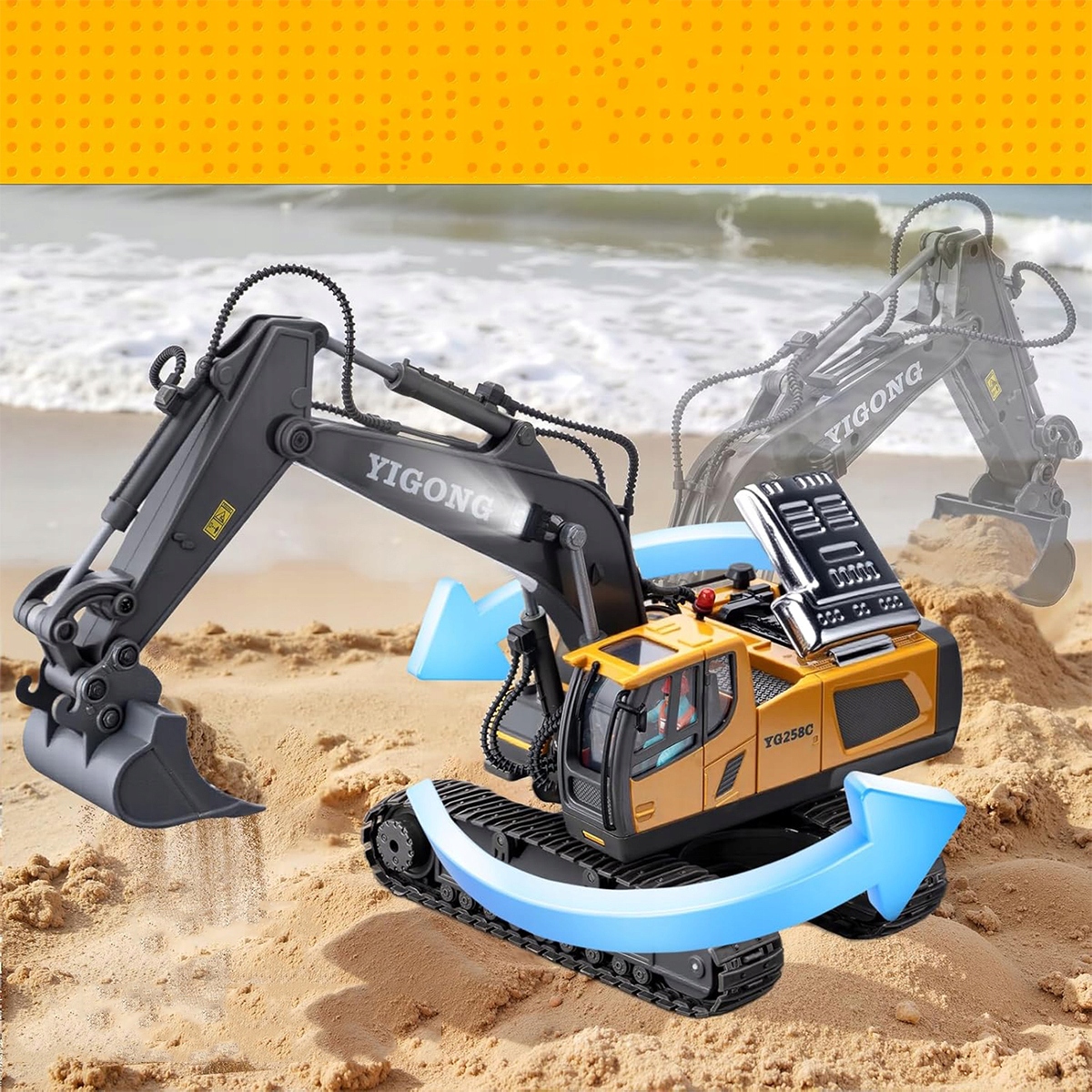 Завдяки вбудованому 11-канальному радіо на 2,4 ГГц і бездротовому інфрачервоному пульту дистанційного керування ви можете легко керувати цією іграшкою-екскаватором, щоб рухатися в будь-якому напрямку. Їдьте вперед, повертайте ліворуч, копайте, повертайте та розвантажуйте – на вас чекає ще більше комбінацій завдань!