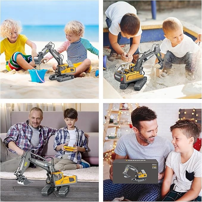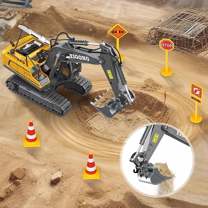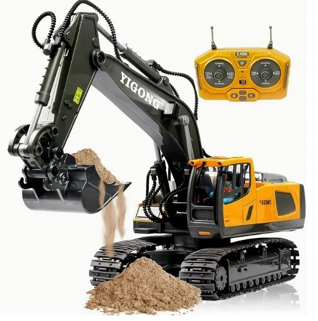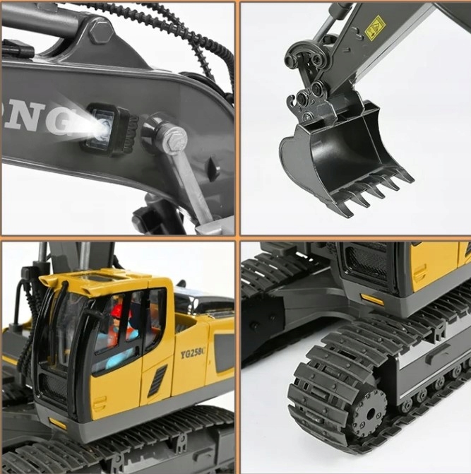 KOPARKA ZDALNIE STEROWANA ZABAWKA NA PILOTA MASZYNA BUDOWLANA ŚWIATŁO LED