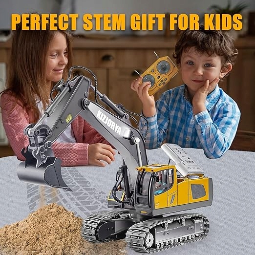 Демо-функція: натиснувши одну кнопку, екскаватор сам представляє свої можливості, що забезпечує додаткову розвагу та навчає дітей роботі машин.