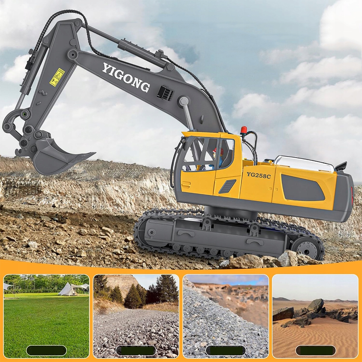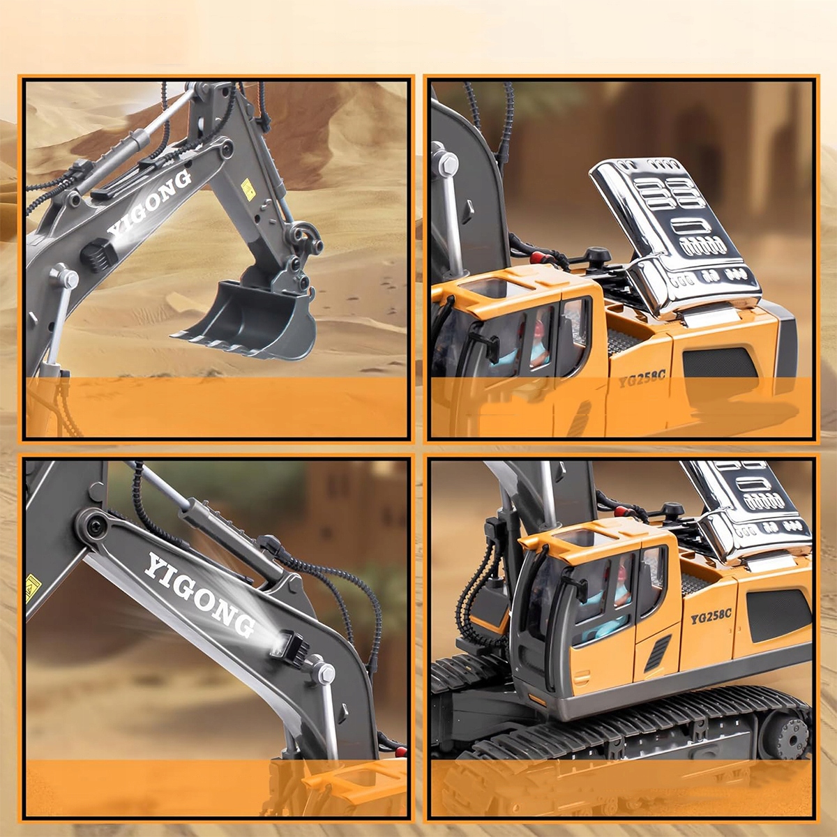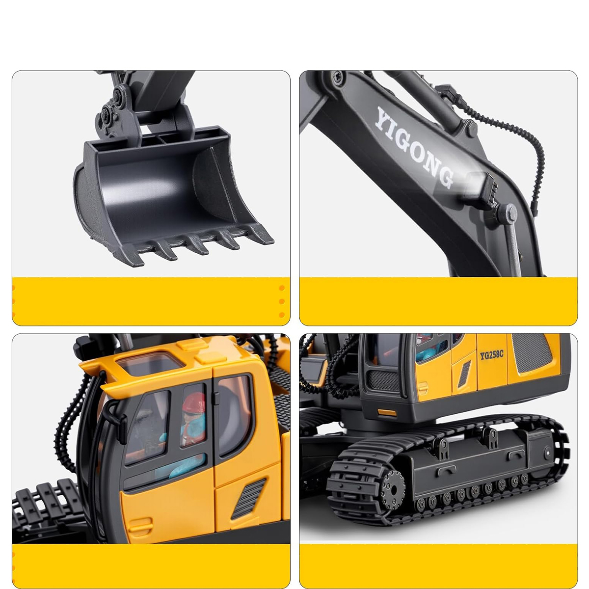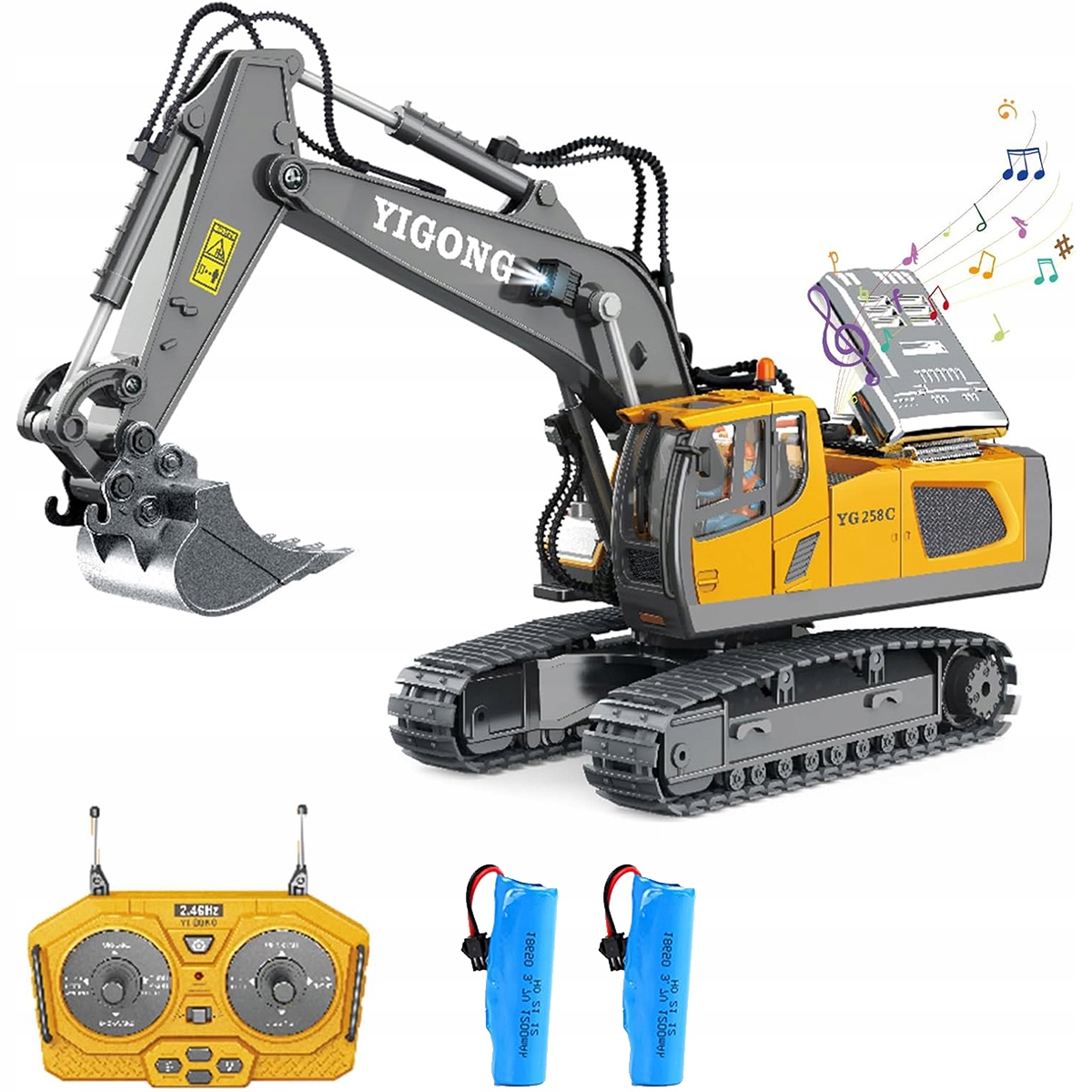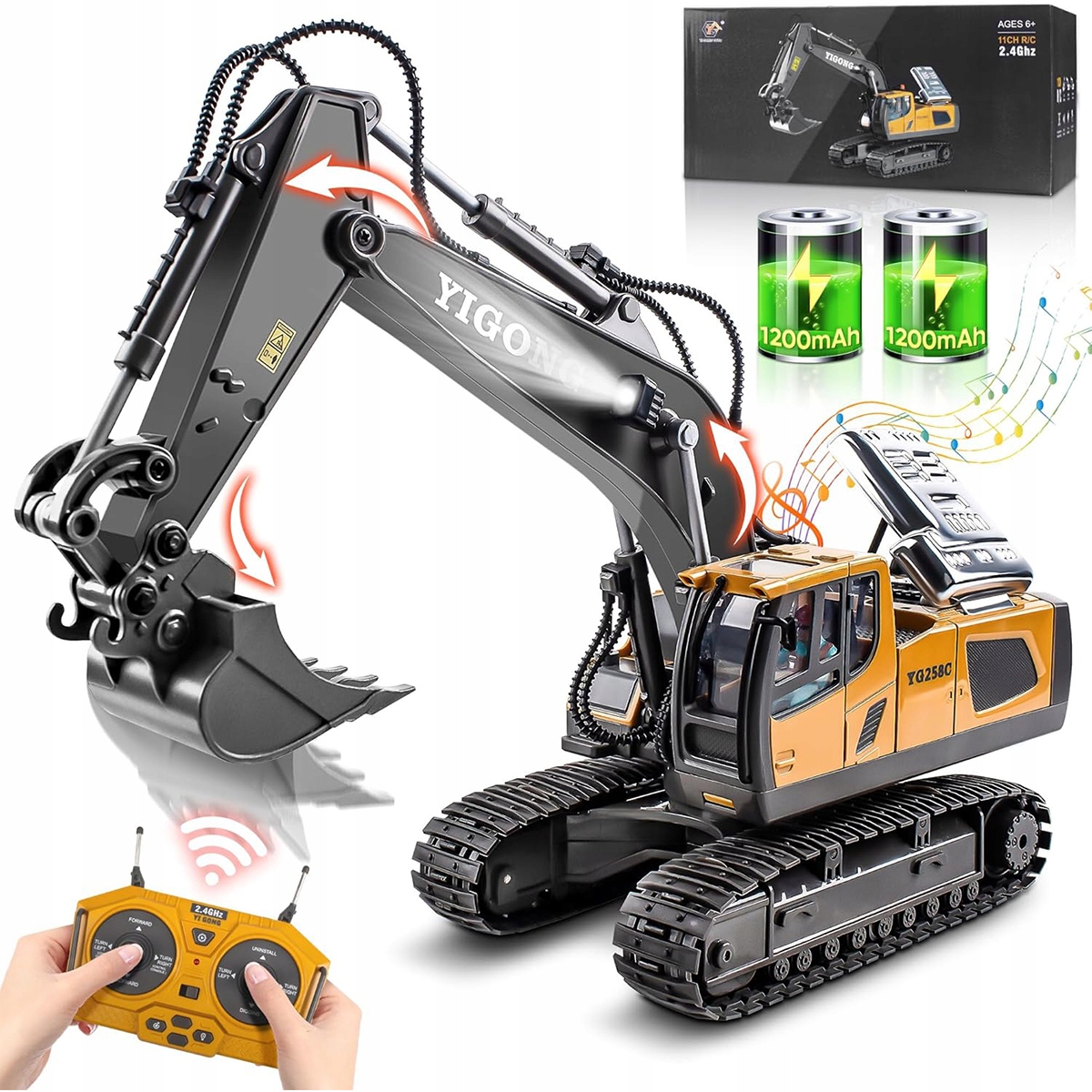 Завдяки вбудованому 11-канальному радіо з частотою 2,4 ГГц і бездротовому інфрачервоному пульту дистанційного керування ви можете легко керувати цією іграшкою-екскаватором, щоб рухатися в будь-якому напрямку. Їдьте вперед, повертайте ліворуч, копайте, повертайте та розвантажуйте – на вас чекає ще більше комбінацій завдань!