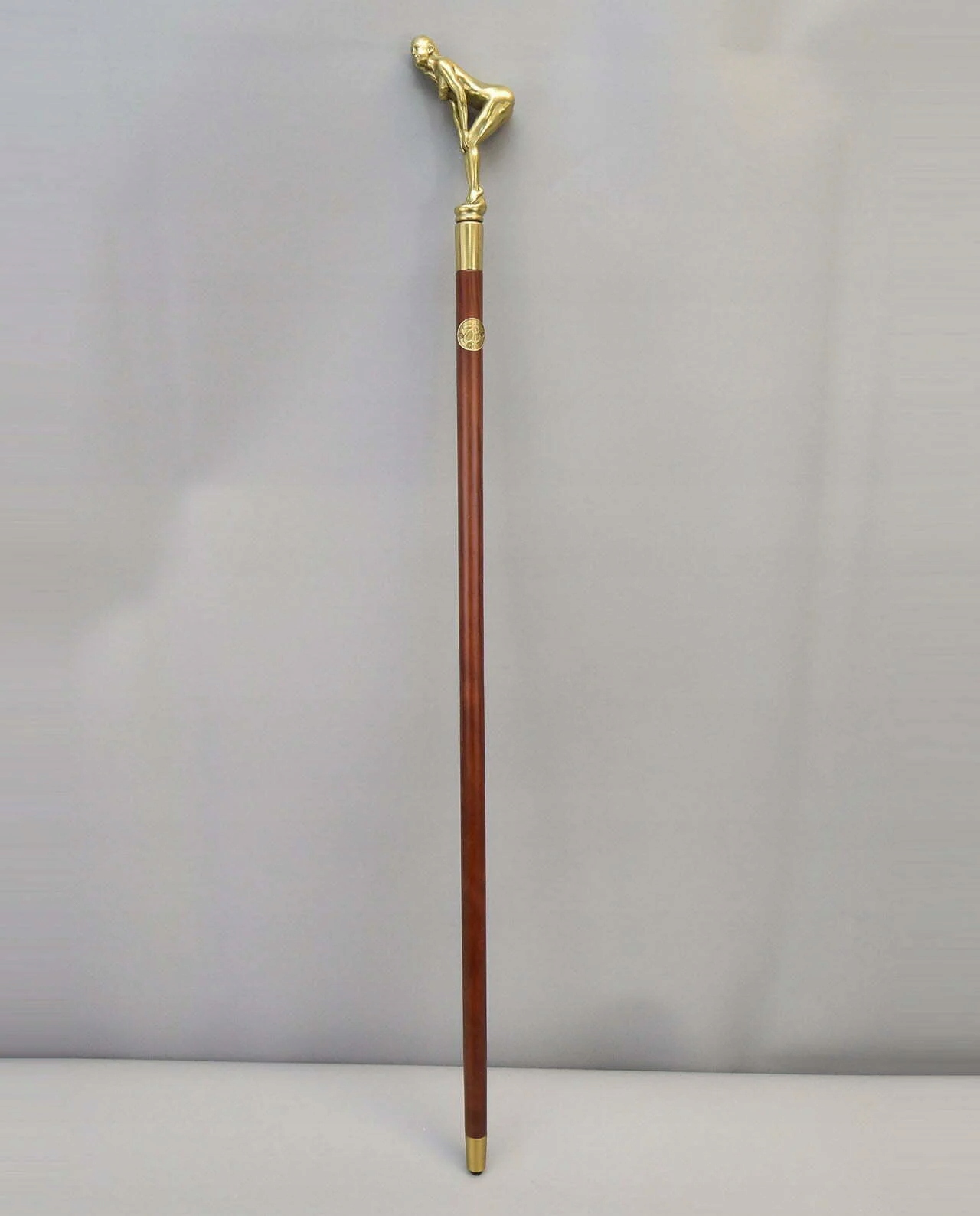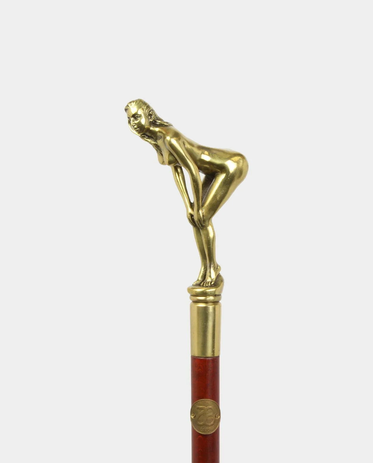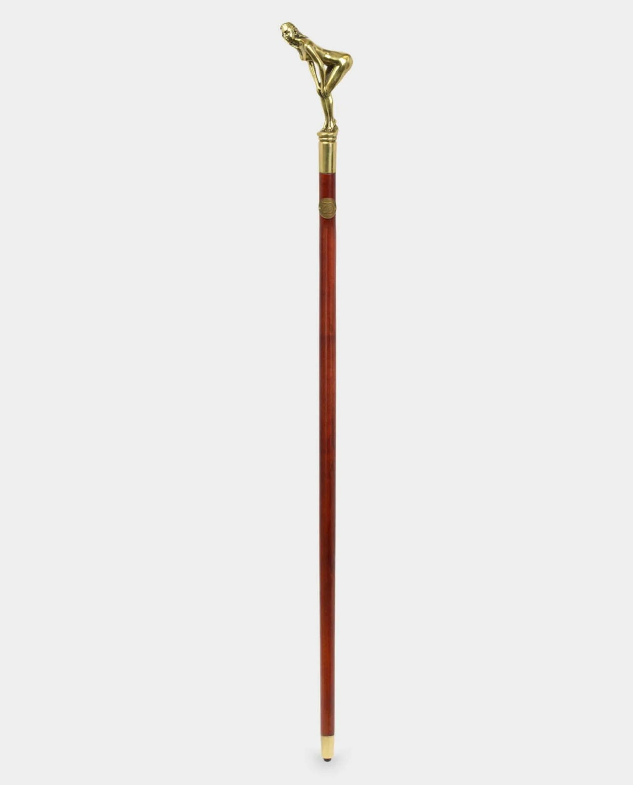 Ексклюзивна палиця з ручкою у вигляді скульптури, що зображує оголену жінку в чуттєвій позі. Ця красива та оригінальна палиця виготовлена з високоякісних матеріалів - бронзи та дерева. Стрижень палиці виготовлений з міцної деревини бука, покритий елегантним вишневим лаком і оброблений гумовою ніжкою. Ручка у формі декоративної скульптури виготовлена з бронзи.