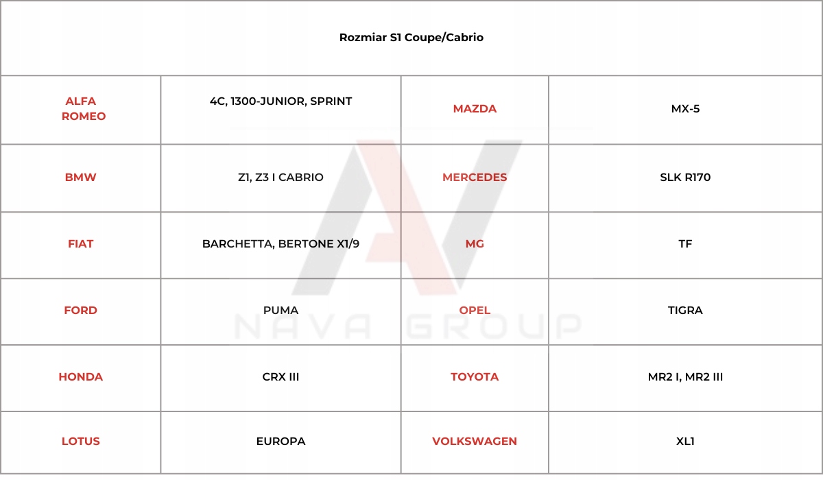 Розмір обкладинки: S1 купе/кабріолет
