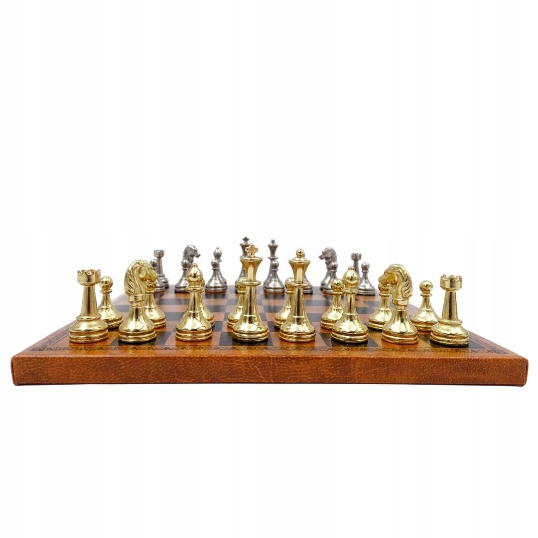 Дерев'яна шахівниця та металеві фігури - ідеальне поєднання класики та сучасності. Металеві шахові фігури виготовлені з точністю та виділяються своїмнезастарілим дизайном. Шахова дошка виконана в темно-коричневому та чорному кольорах, а фігури срібні та золоті. Таке поєднання кольорів надає шахам надзвичайно елегантний вигляд, який пасує до будь-якого дизайну інтер’єру.