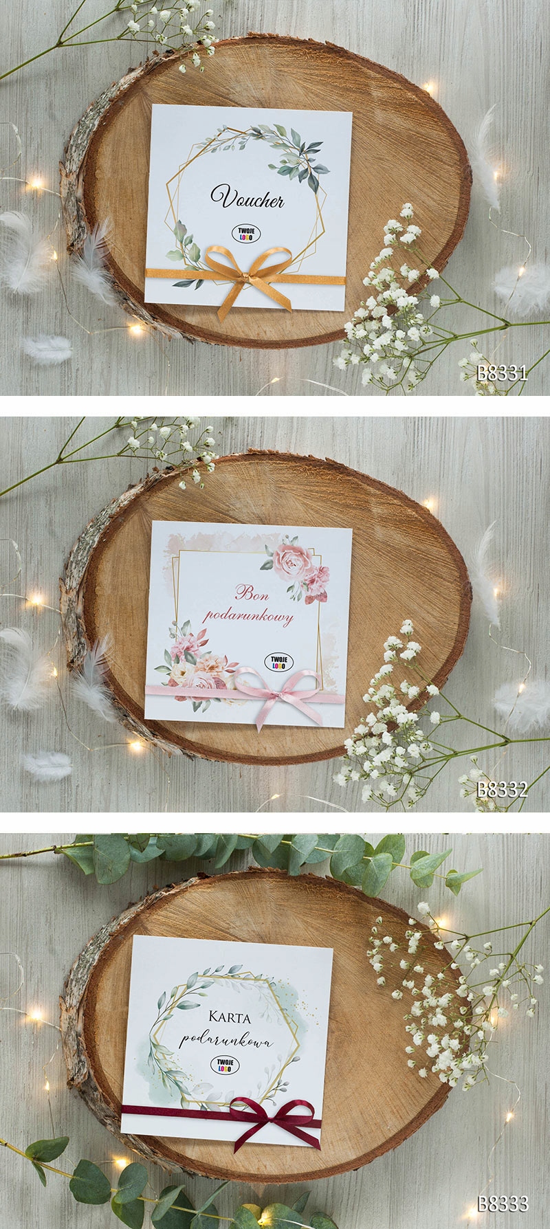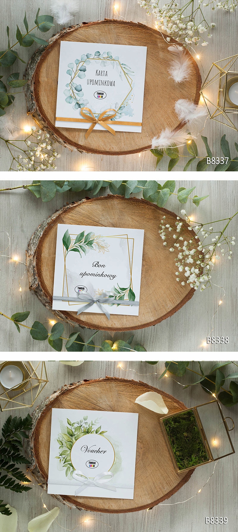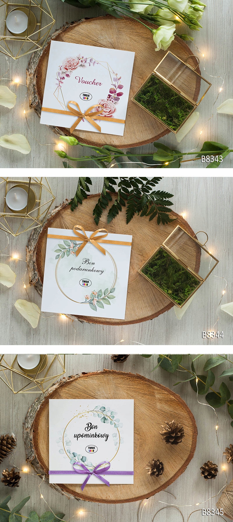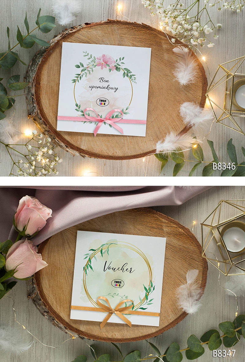 Ексклюзивні подарункові картки з логотипом і конверти включені