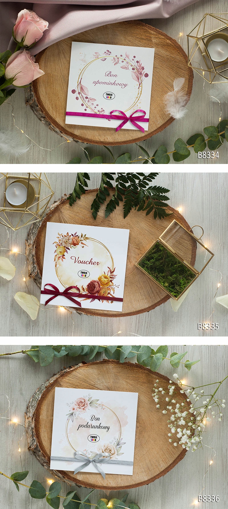 - Ви можете вирішити, як зав’язати ваучери – збоку, на внизу або вгорі. Стрічка легко зав'язується (як шнурки). Додайте стрічки приблизно 0,6 м/шт. якого достатньо для будь-якого виду обв'язки