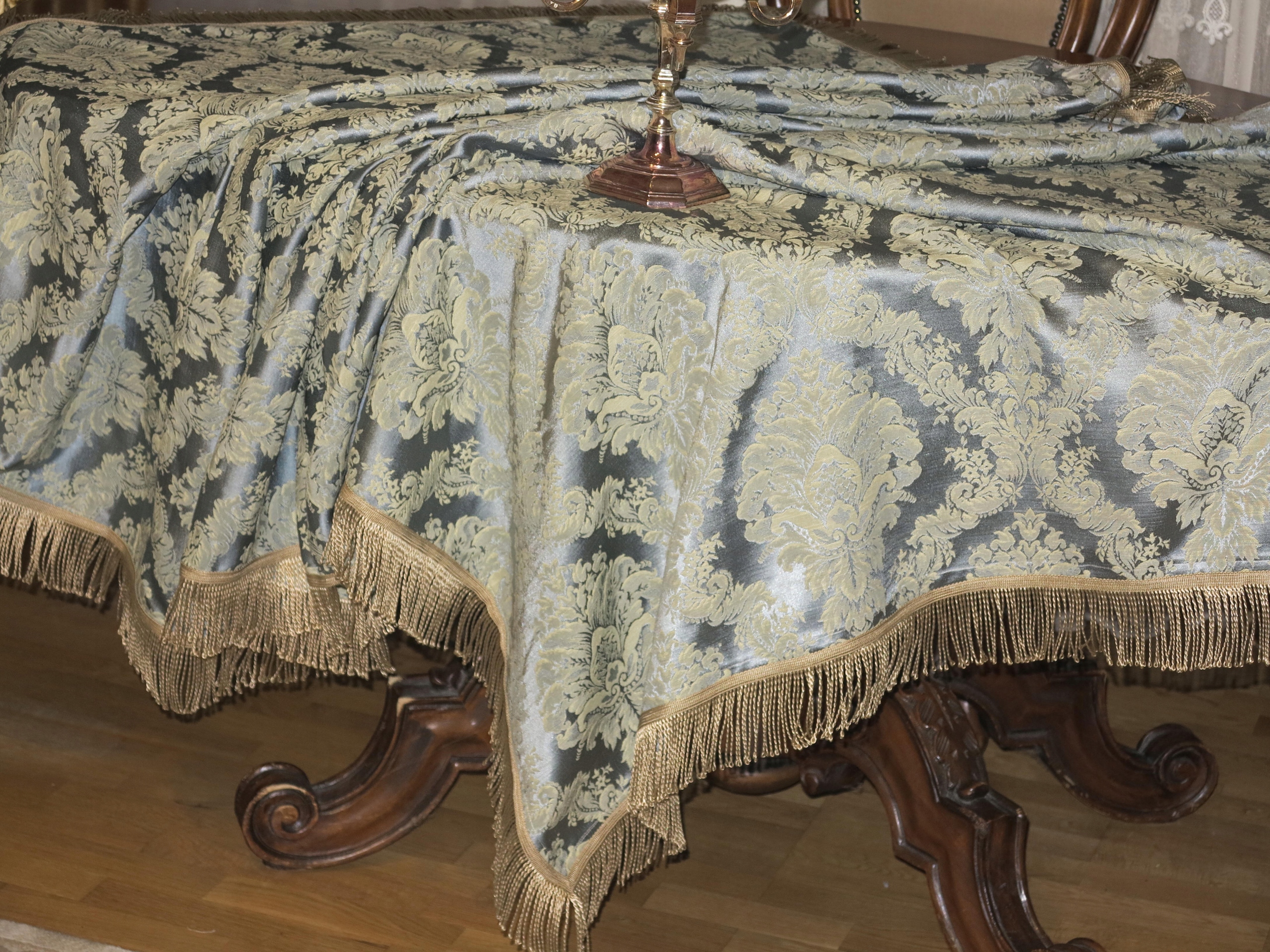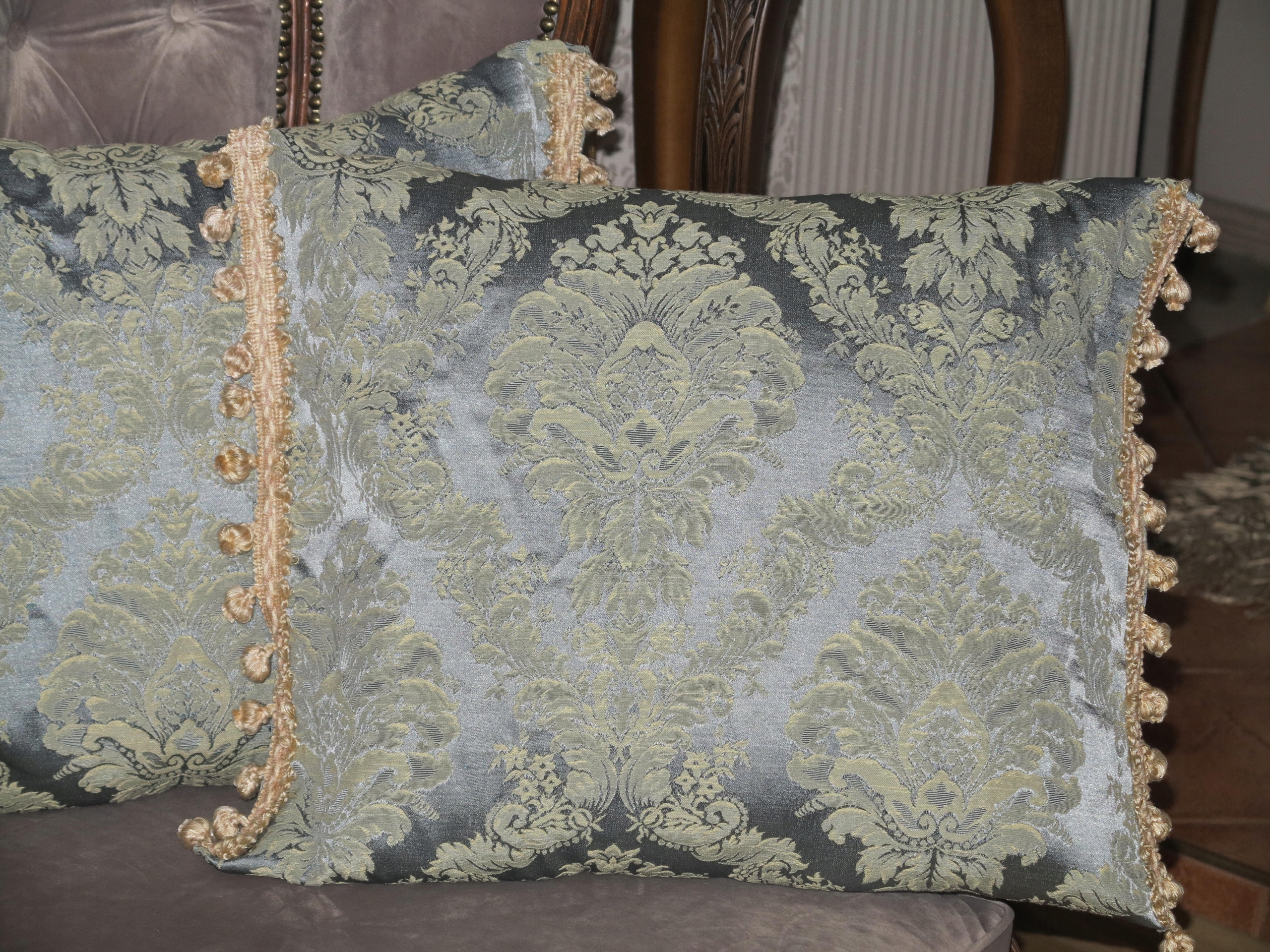 Ексклюзивні великі атласні наволочки в паризькому синьому кольорі, малюнок Acanthus, дистанційне управління