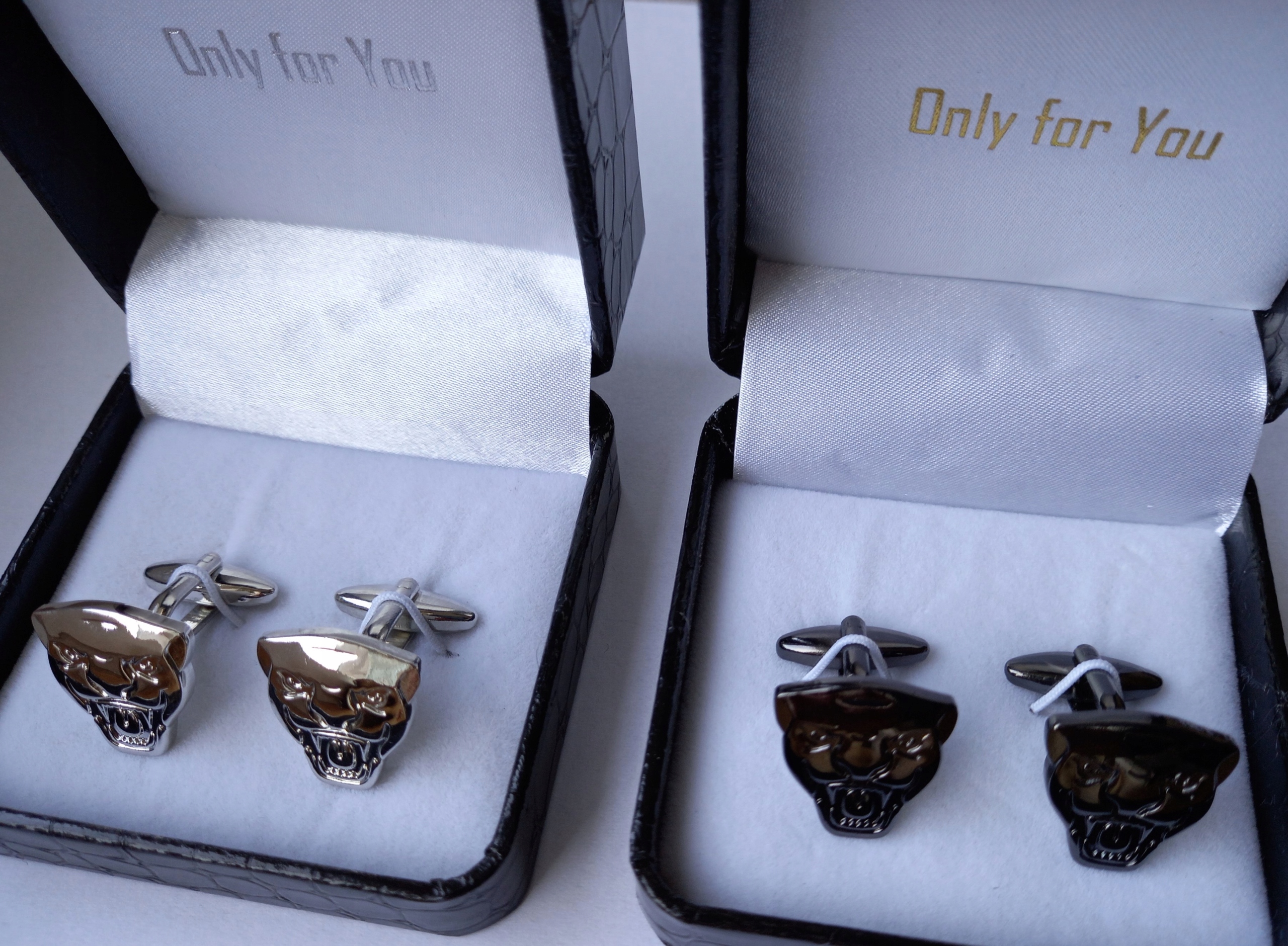 Чудовий набір із пари запонок для сорочки від Exciting із ексклюзивної обмеженої серії Only for You. Запонки виготовлені з дорогоцінного металу у сріблі або титані (підтвердіть вибір кольору) у формі голови кота Ягуара як на фото. Запонки упаковані в елегантну чорну коробку з малюнком зміїної шкіри.