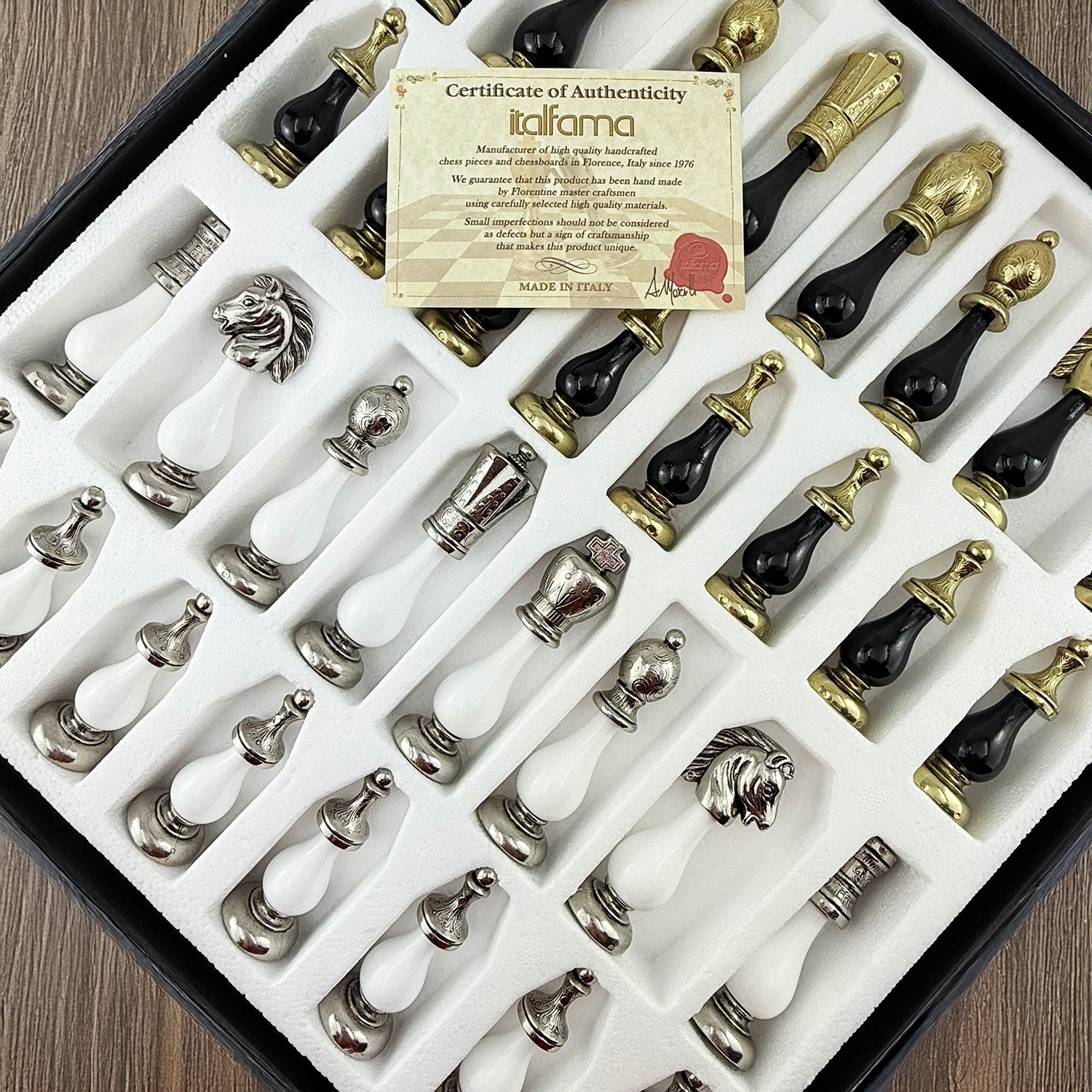 Вишуканий шаховий стіл з дерева, розроблений у дусі італійської майстерності від всесвітньо відомого бренду Italfama. Це елегантний предмет меблів і повний ігровий набір в одному - для вітальні, офісу або зони відпочинку. Переваги: 2-в-1: функціональний стіл з вбудованою дошкою Елегантний позачасовий дизайн Фігури колекції Arabescato: дерево, цинк, латунь, нікель Висока якість виготовлення, виробництво Італія Розміри та дані: Дошка: 58 × 58 × 9,5 см Площа: 5,0 см Висота столу: 68 см Король: 10 см, діаметр основи Ø 2,9 см Країна виробник: Італія У набір входить: Стіл шаховий з дошкою 58×58×9,5 см Повний набір фігур Arabescato (дерево/цинк/латунь/нікель) Чому це того варте: Поєднання розкішного предмета меблів з ігровим набором створює неповторний декоративний акцент і чудовий подарунок для гурмана.