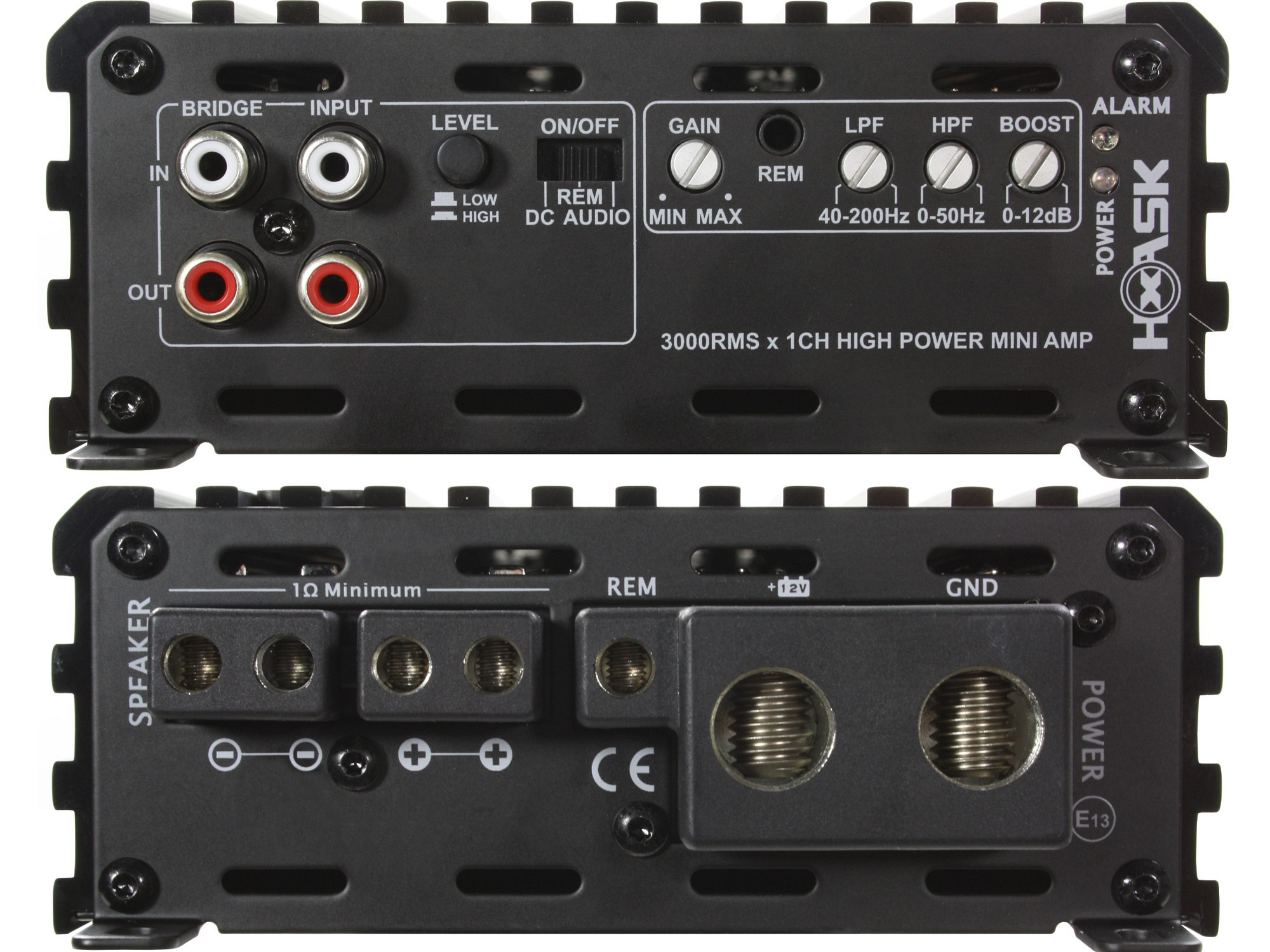 1-канальний автомобільний підсилювач потужністю 1x1000/2000/3000W, стабільний до 0.5Ω, цифровий (D), bridgeable (Bridge-Link), Hi/Lo входи сигналу, Auto Turn On/Off, малі розміри.