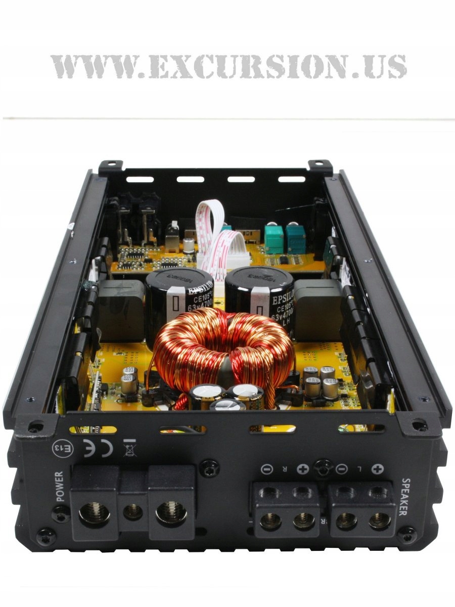 2-канальний автомобільний підсилювач потужністю 2x300-450W / 1x800W, стабільний до 2Ω, цифровий широкосмуговий (FRD class - Full Range Digital), Hi/Lo, Автоматичне ввімкнення/вимкнення входів сигналу, невеликі розміри, дизайн, оптимізований для покращення звуку та вищої якості відтворення звуку.
