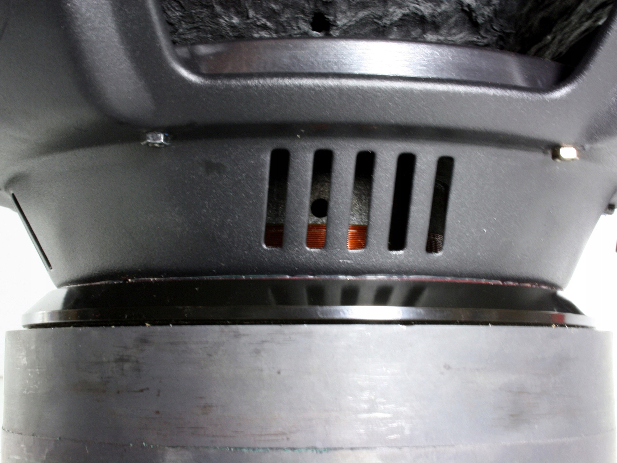 - 2-компонентна лінійна нижня підвіска з кільцем, прикрученим до корзини - ідеально центрує звукову котушку та контролює значні відхилення діафрагми.
