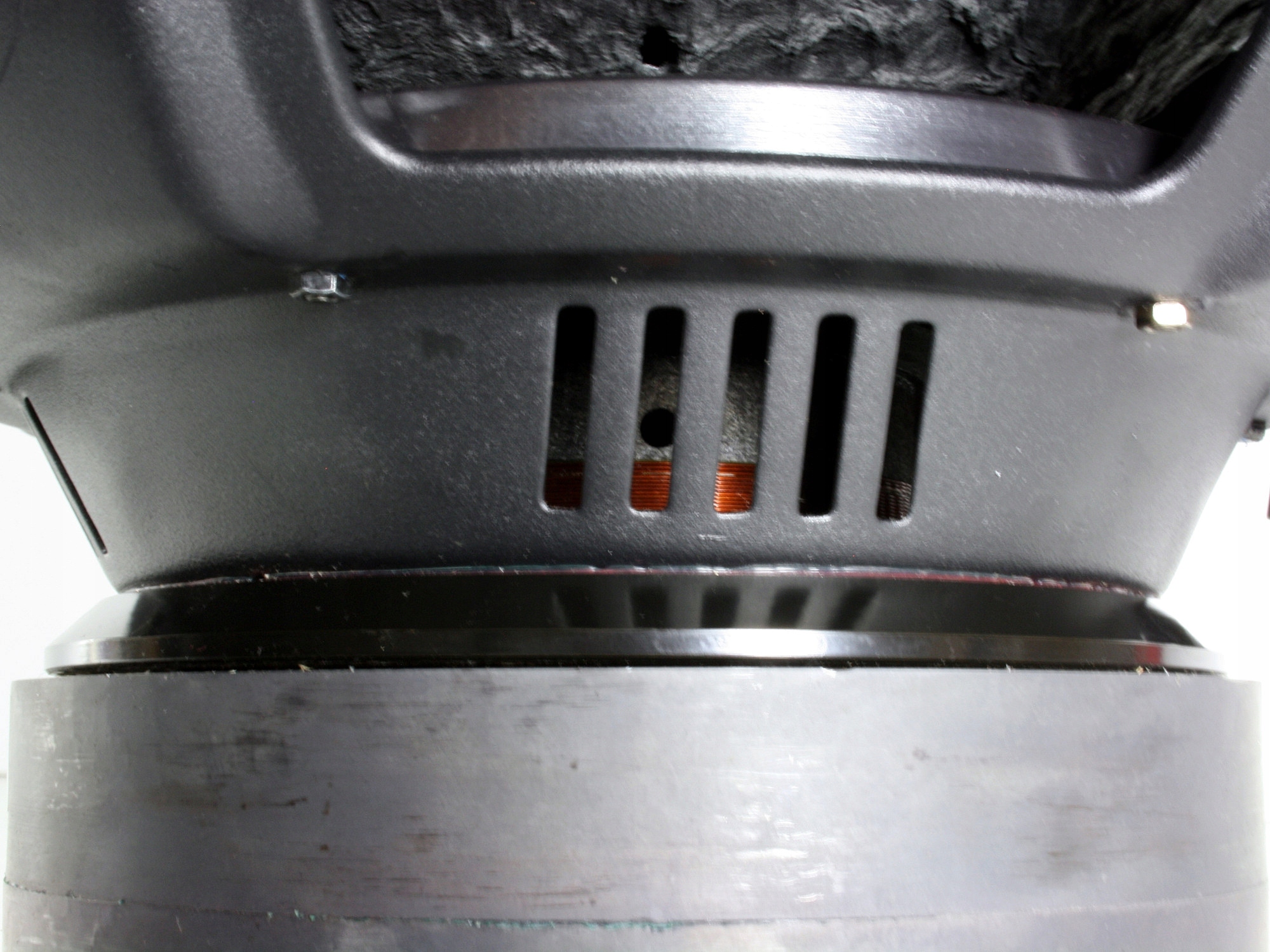 - Подвійна 4-шарова котушка BASV , діаметром 3 дюйми та висотою 45 мм, намотаний мідним дротом (OFC ) на легкий алюмінієвий каркас з додатковими отворами у верхній частині, які забезпечують вільний потік повітря, що розсіює тепло.