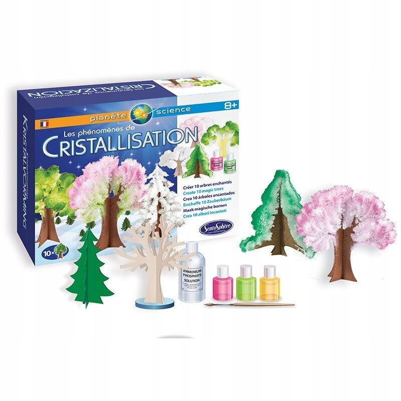 Використовуючи явище кристалізації, дитина з набором Sentosphere Crystallization Experiments може створити унікальний ліс із десяти мінеральних дерев.