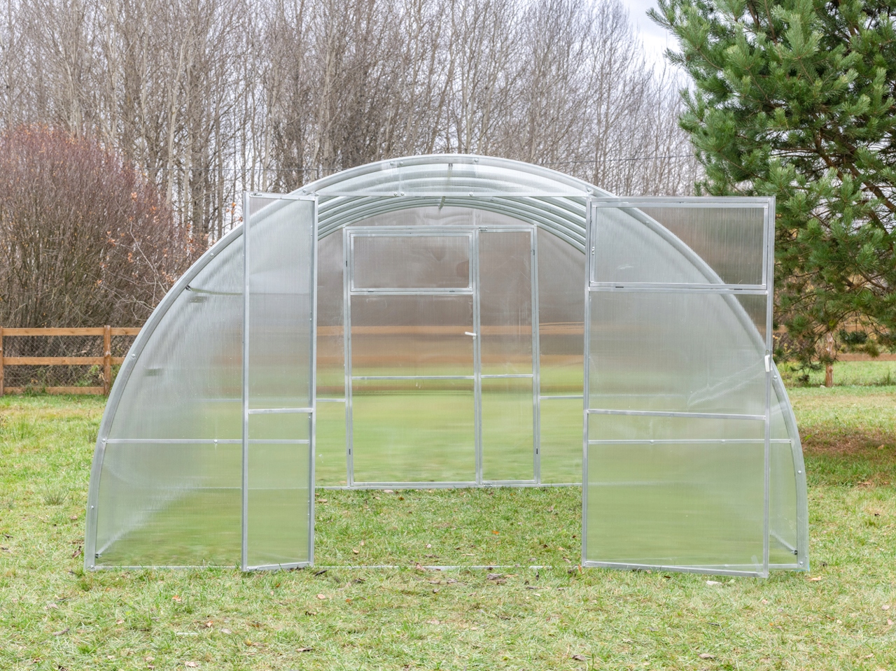 Парника має дві двері з усіх боків. Windows вже встановлено в парникових дверях.
