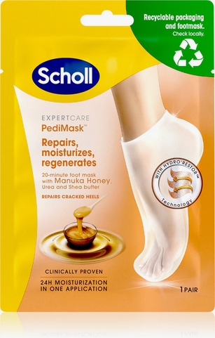 Не забувайте про рутин догляду ніг, оскільки вони борються з втомою, спричиненою як ходьбою, так і стоячи щодня. Однак завдяки регулярному догляду вони залишаться красивими та готовими до висвітлення тисяч кроків. Маска для ніг Scholl Manuka Honey ідеально піклується про суху і шорстку шкіру, пом’якшує її і зіпсуйте ноги, роблячи шкіру шовковистою гладкою. Ніколи більше тріснуть підбори, або загартована і мозкова шкіра, а натомість м'які і гладкі ноги, які вам не соромно, щоб показати світ.