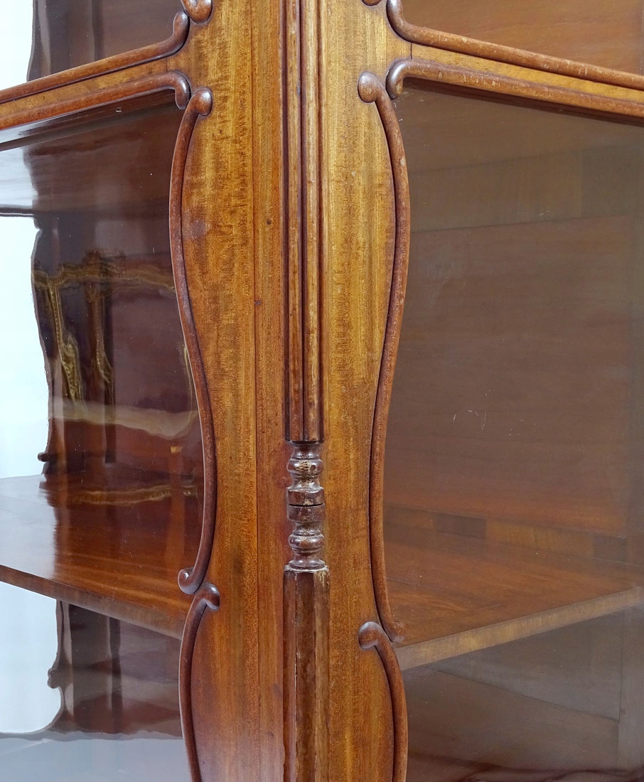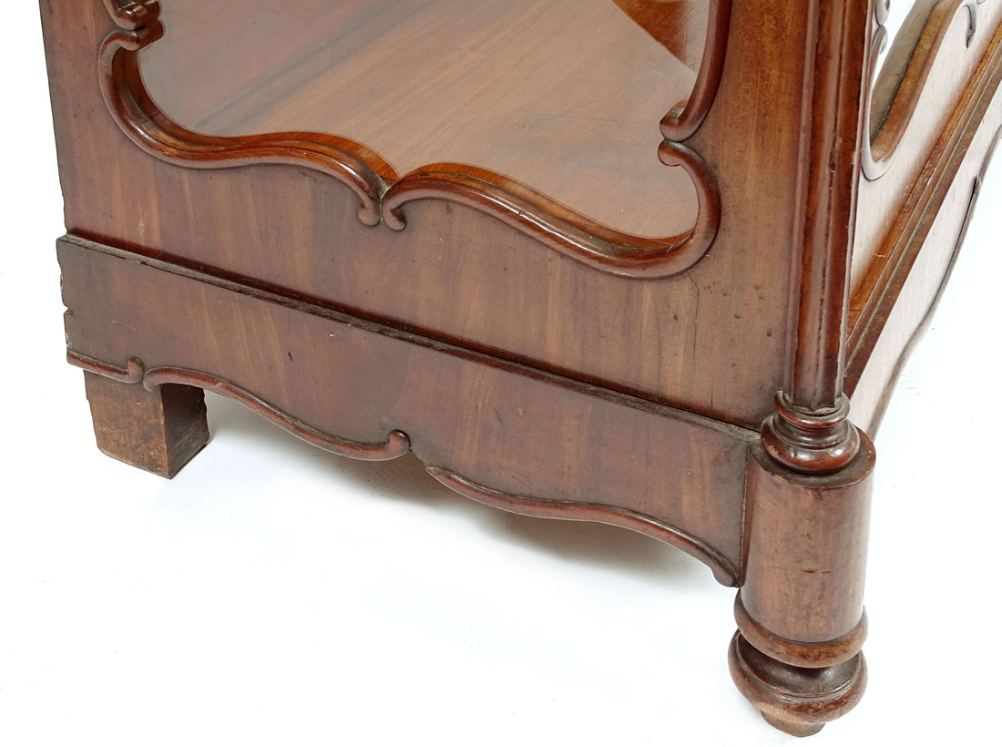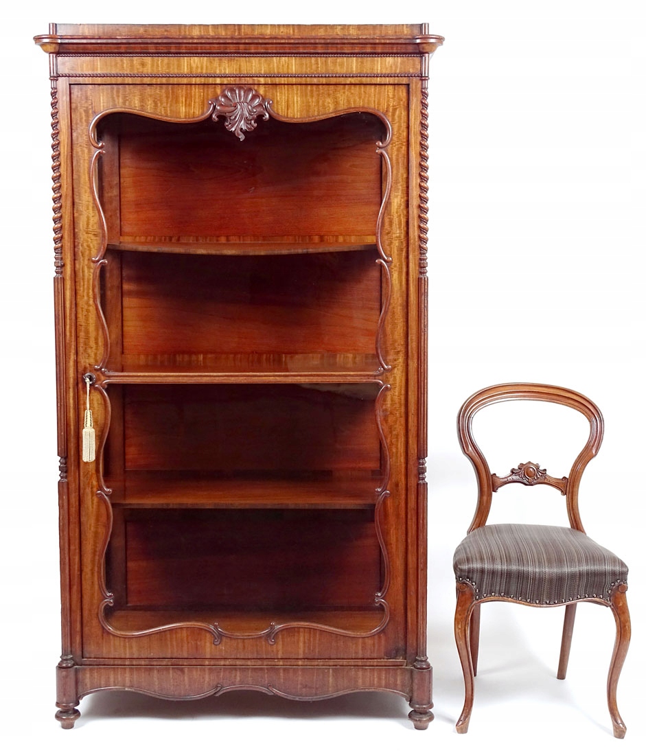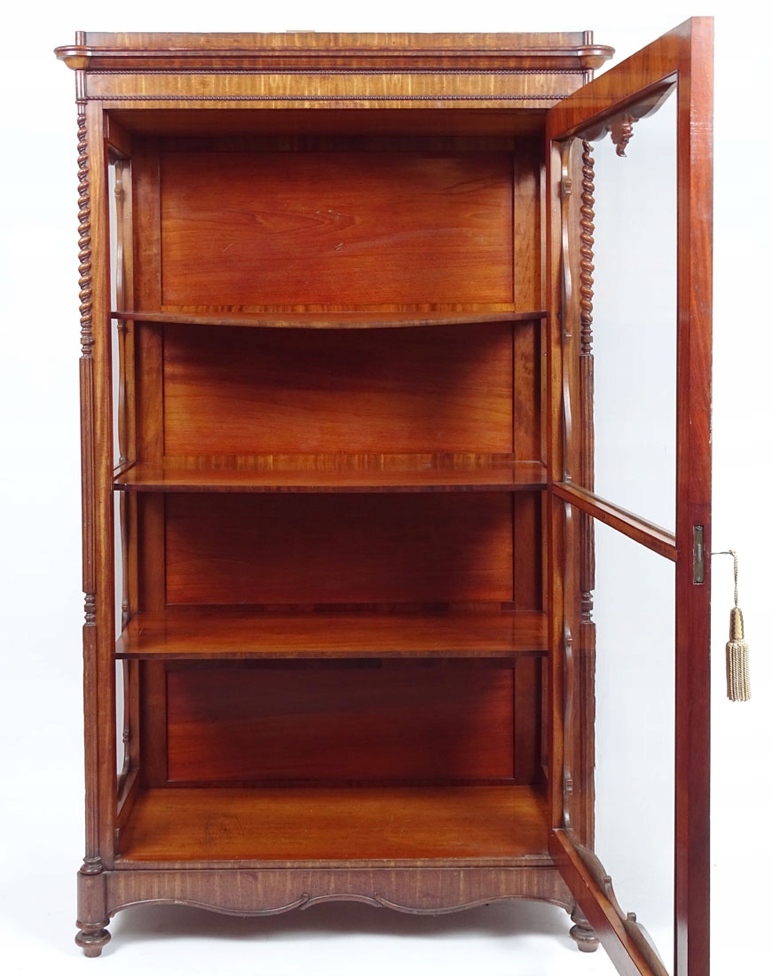 Конструкція з сосни та червоного дерева, шпон червоного дерева, різьблення, оригінальне скло, середина 19 століття.