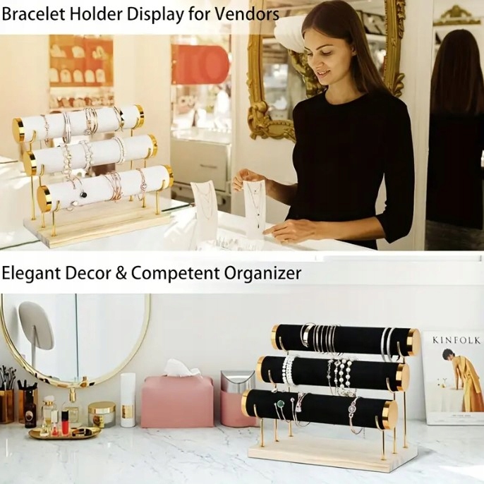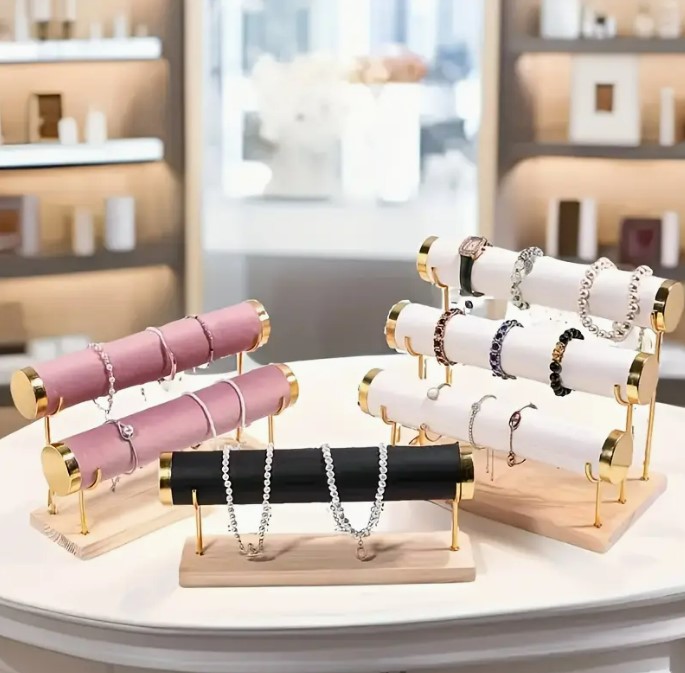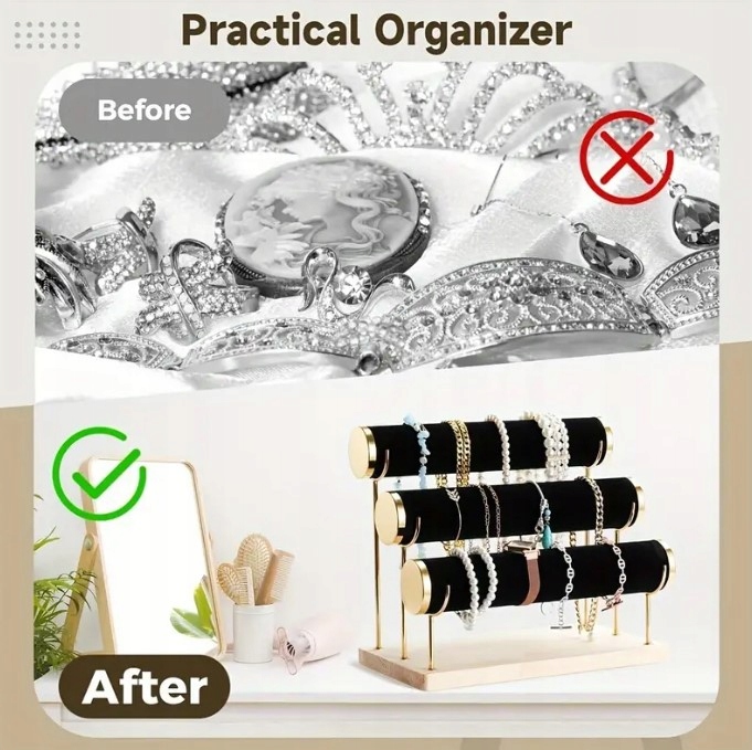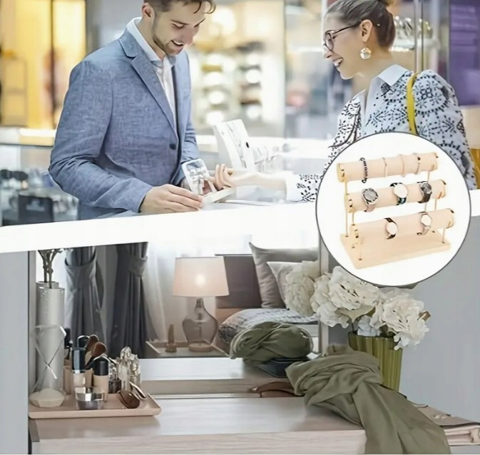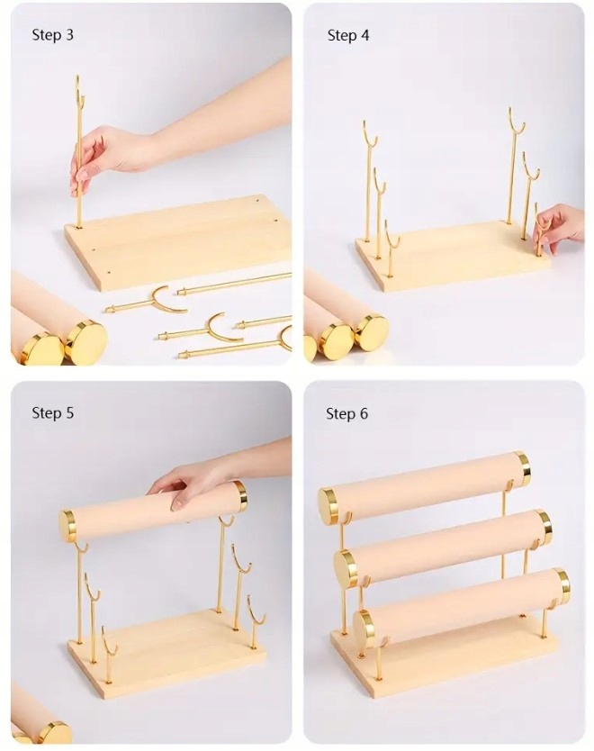 EKSPOZYTOR STOJAK NA BIŻUTERIĘ ZEGARKI BRANSOLETKI 3 POZIOMY ECRU