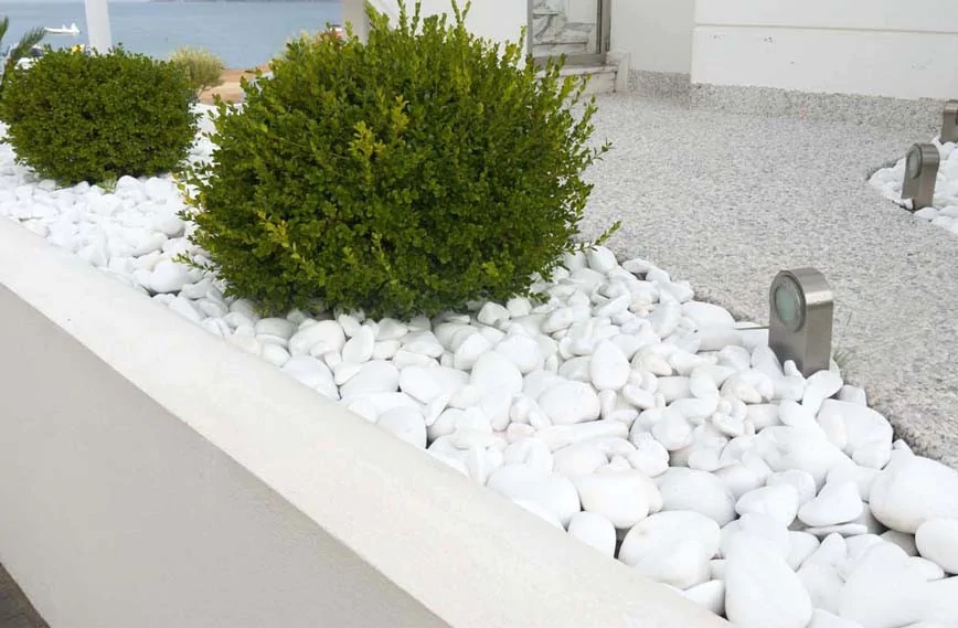 Білосніжний мармуровий камінь з високою міцністю, повною морозостійкістю, низьким водопоглинанням. Ідеальний декоративний елемент для садів і будинків, він порадує кожного. Він містить мерехтливі частинки, цей ефект найкраще виглядає в сонячний день.Extra White Greek Pebble стане ідеальною прикрасою для саду.