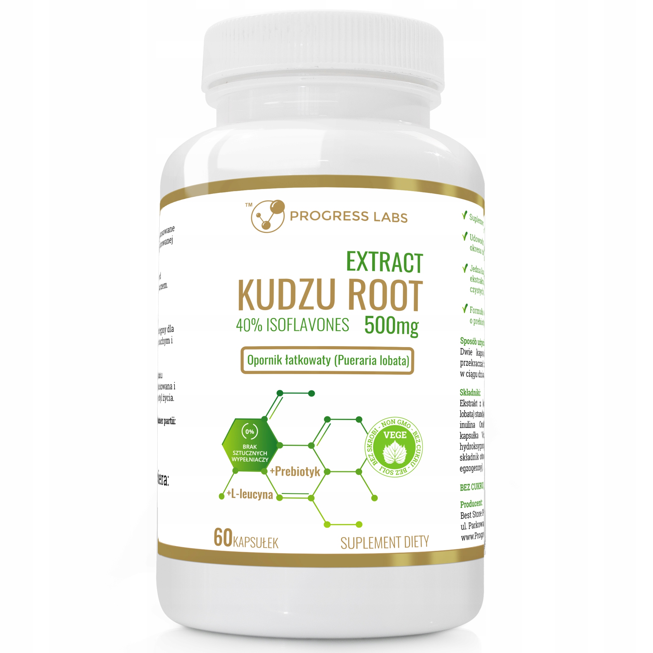 - Мега-доза (2 капсули) - Кудзу Корінь прогресу Лабораторія®- це дієтична добавка, що забезпечує до 1000 мг чистого екстракту з кореня kudzu (патч-резистора), стандартизованих на 40% isoflavones. Збагачений Крім того, з пребіотиком та амінокислотою. мікрокристалічний.