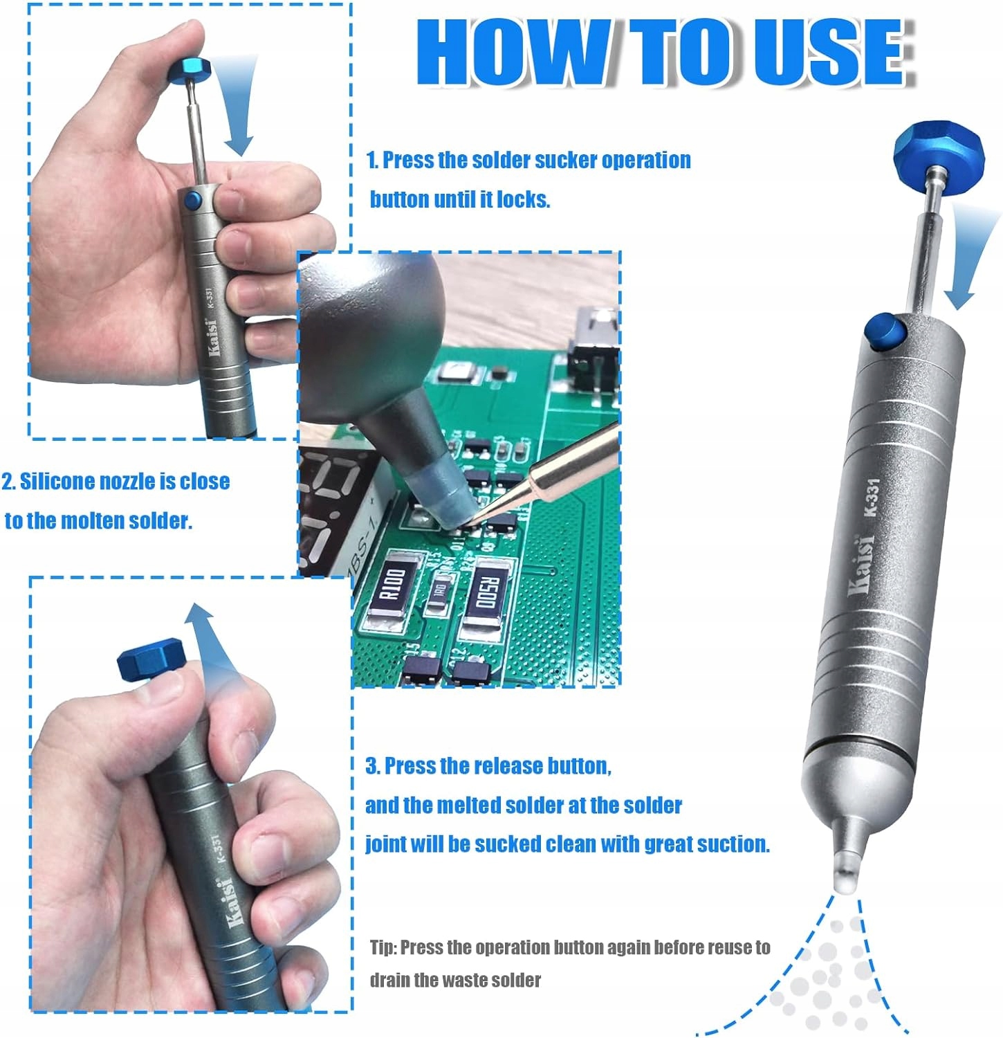 ЕКСТРАКТОР ДЛЯ ЖЕРСТИ ПОТУЖНИЙ ЕКСТРАКТОР ДЛЯ РУЧНОГО ПАЯННЯ АЛЮМІНІЮ - KAISI K-331 HQ