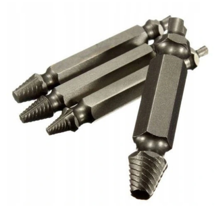 Щоб викрутити несправний шуруп, нам знадобиться дриль - 10 секунд достатньо, щоб позбутися проблеми. У комплект входять чотири екстрактори різного діаметру, що дозволяє витягувати шурупи різного розміру. Інструмент дозволяє викрутити гвинт, навіть якщо його головка зламана. Викрутки виготовлені з міцного матеріалу. Вони дозволяють видалити будь-який пошкоджений гвинт.
