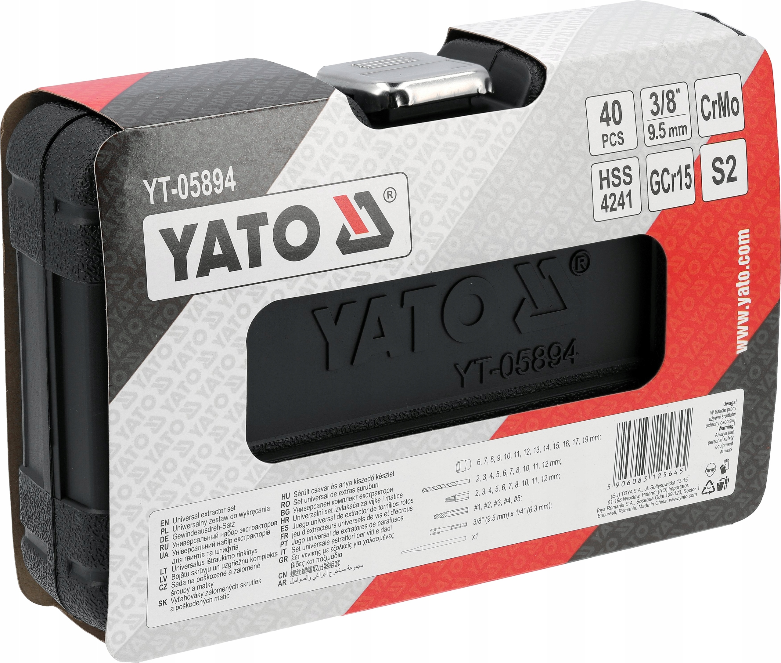 Професійний набір YATO , призначений для ефективного видалення пошкоджених, застряглих або зламаних гвинтів, шпильок і гайок.