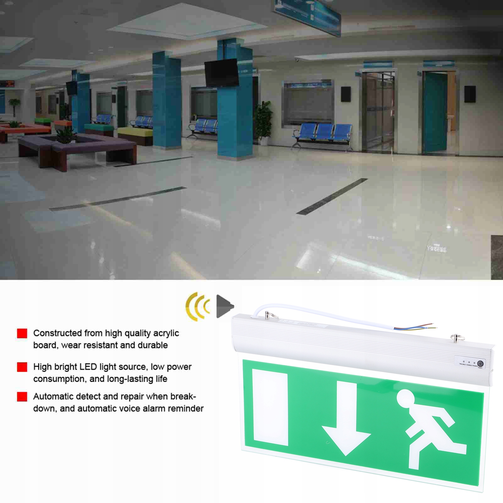 2. Ця світлодіодна сигнальна лампа для аварійного виходу призначена для аварійної евакуації.