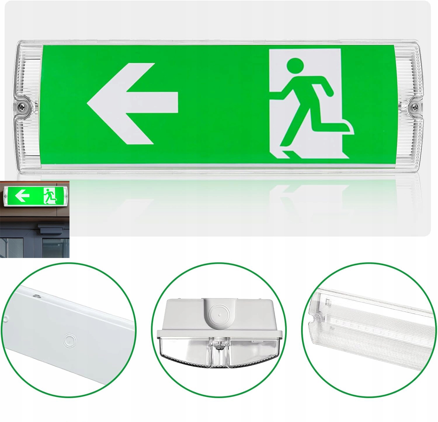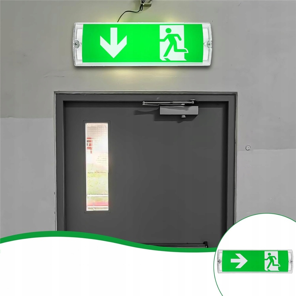 Професійне евакуаційне світло світлодіод є важливим елементом обладнання для кожної громадської будівлі. Оснащений акумулятором 1200 мАг, він забезпечує 3 години безперервної роботи під час відмови живлення. 27 світлодіодні світлодіоди гарантує відмінну видимість знаку навіть з відстані 40 метрів . Набір включає 4 наклейки на евакуацію, які можна розмістити в стратегічних місцях.
