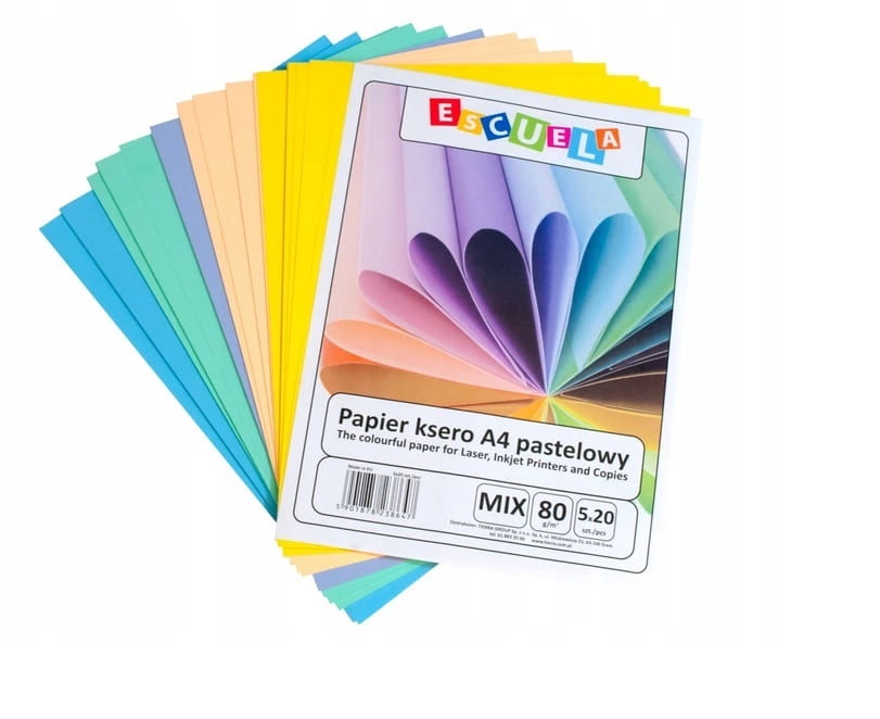 Кольоровий папір ESCUEL, A4, 100 аркушів пастельних сумішей