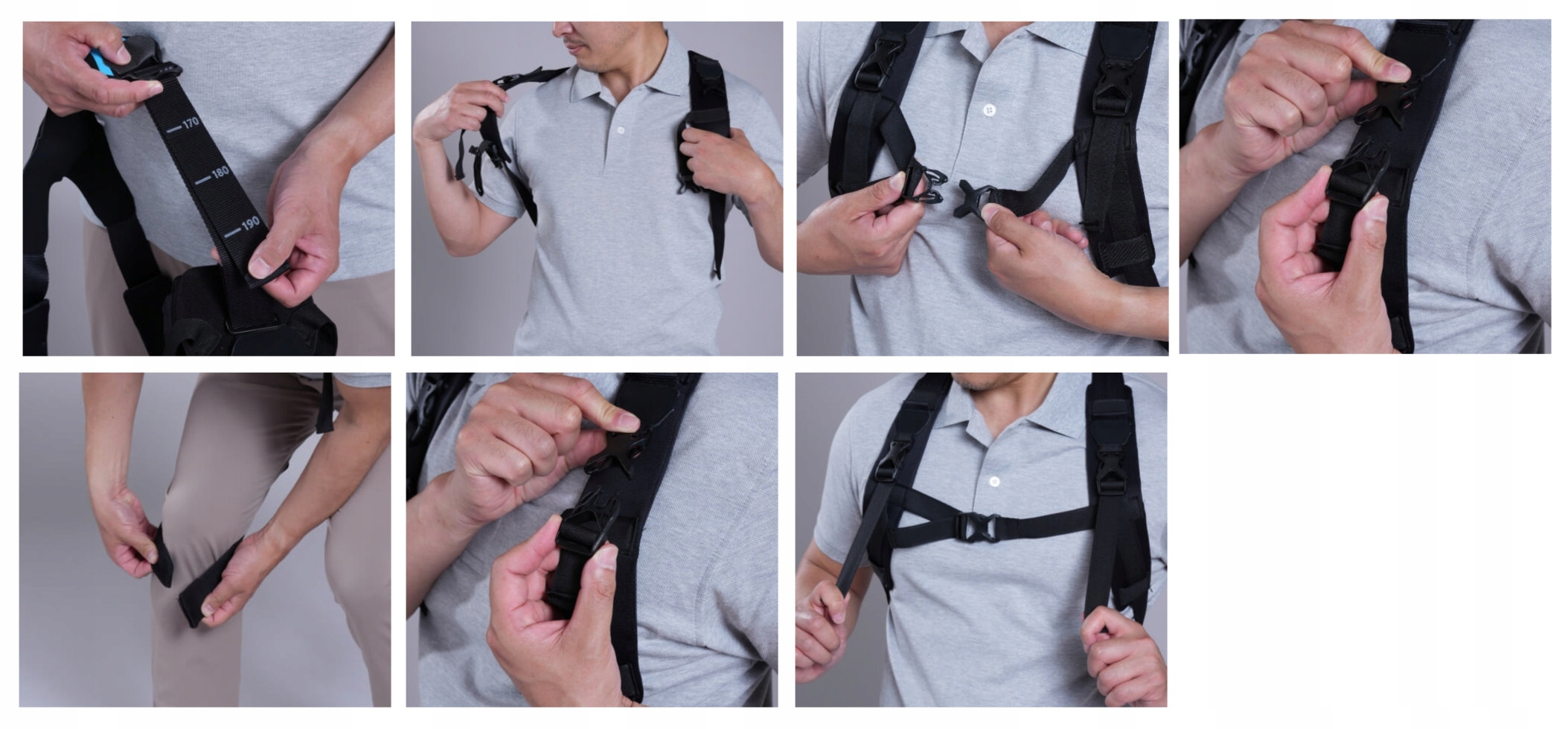 - Тепловий комфорт: Мінімальна зона контакту з тілом означає, що екзоскелет не викликає перегріву, забезпечуючи комфорт навіть при роботі при більш високих температурах. 4 Система регулювання дозволяє ідеально відповідати силуету.