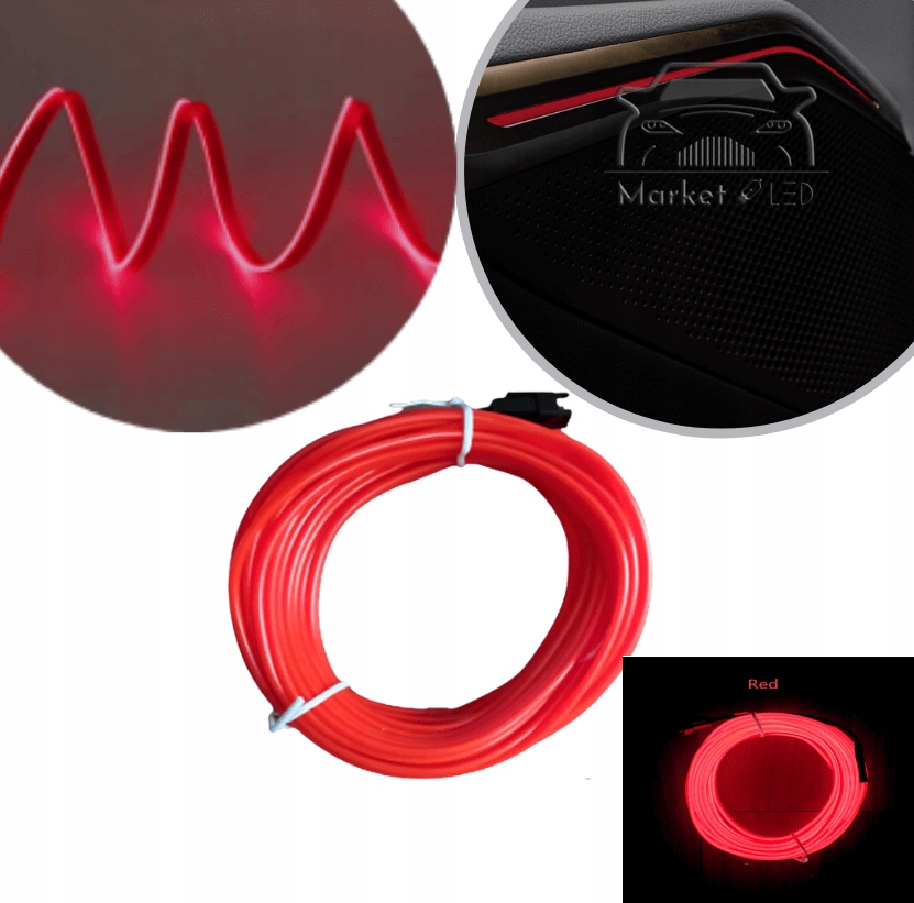 Ель -дріт 2 м оптичне волокно - червона, навколишня 12В стрічка