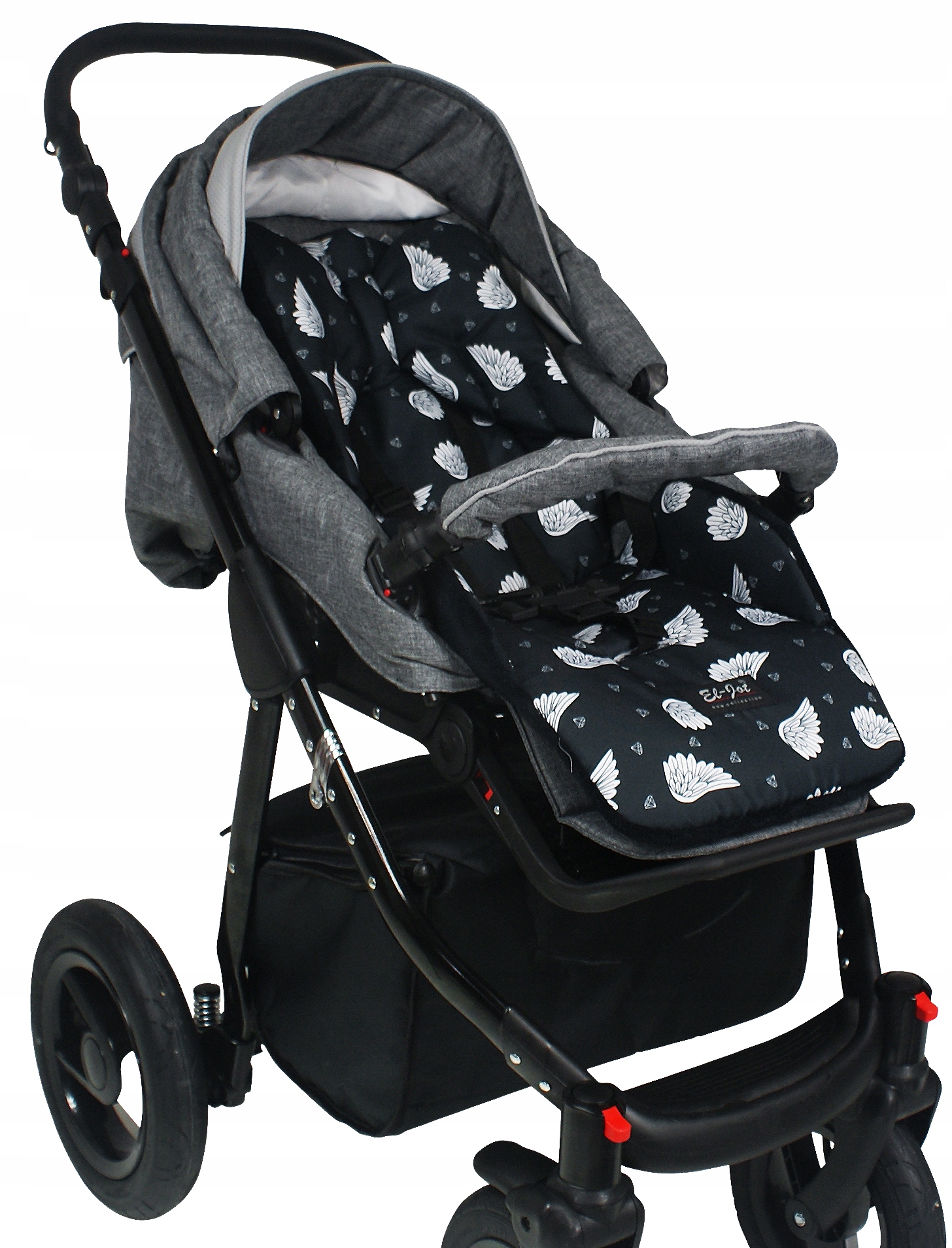Вставка для коляски, яку ми виробляємо, має додаткові крильця для захисту оббивки коляски від забруднення.