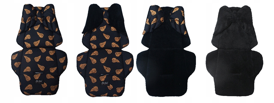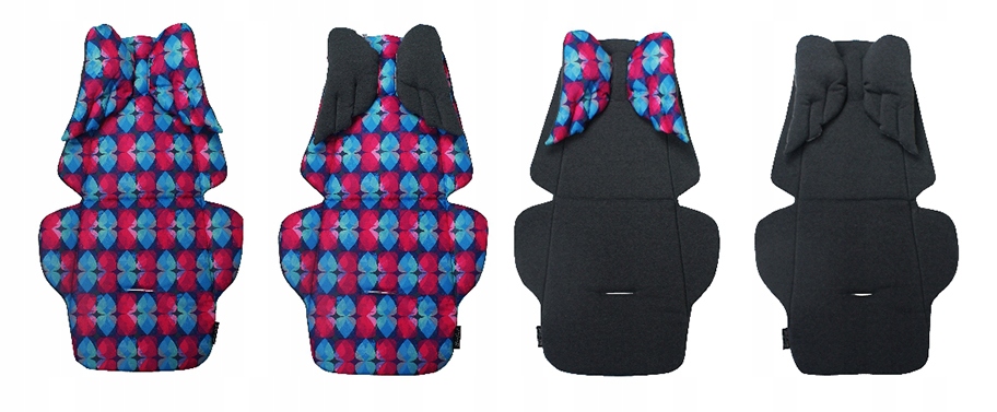 Двосторонній вкладиш для коляски з подушкою "КРИЛА" з ПОЛІЕСТУ або бавовни в різних малюнках і кольорах, в поєднанні з приємним на дотик ОКСАМИТОМ (MINKI).Всередині наповнена 10мм. товста губка і яйцеклітина. Його можна використовувати з обох сторін.