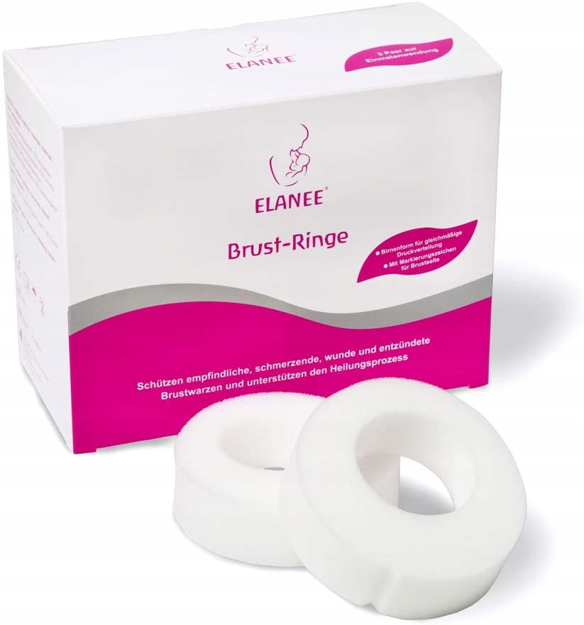 м'які грудні кільця Elanee захищають стресові та чутливі соски завдяки формі груші. Завдяки порожнистим підшипникам контакт з бюстгальтером та одягом мінімізований і, таким чином, запобігає подальшому тертях. Аксесуари для грудного вигодовування проникні для повітря та стимулюють кровообіг. Це сприяє більш швидкому загоєнню ран.